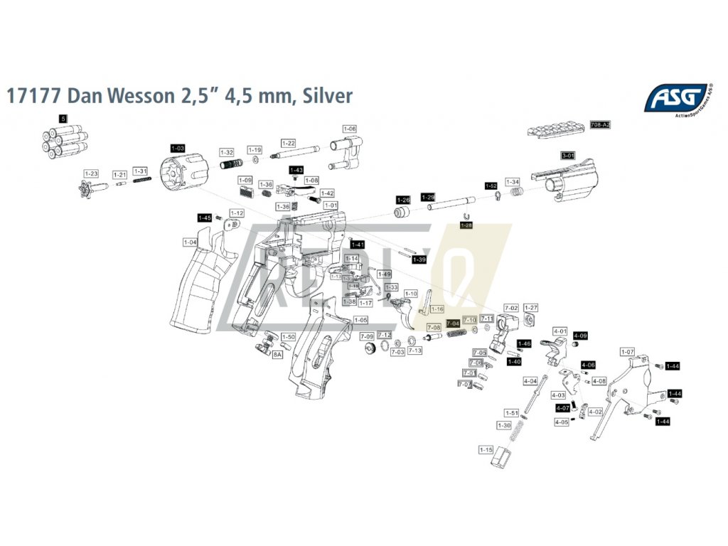 Dan Wesson 2,5" je krásně provedený revolver. Vnitřní mechanismus pohání klasická 12g bombička CO2. Na kovovém povrchu se nachází podpis Daniela B. Wessona. Bubínek na 6 nábojnic se vyklápí klasicky do boku. Součástí balení je rychloplnička na nábojnice. Hlaveň je po celé délce hladká.