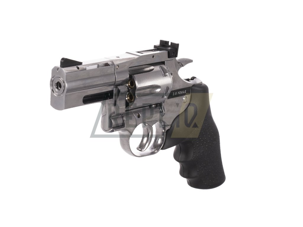 Revolver má spoušť typu Double Action, kterou zajišťuje bezpečnostní pojistka umístěná za kohoutkem. Zbraň je určena pro střelbu diabolkami ráže 4,5 mm. Ty se nabíjejí do zadní části nábojnic a následně vkládají do bubínku. Ten vyklopíte pomocí pojistky na levé části zbraně.