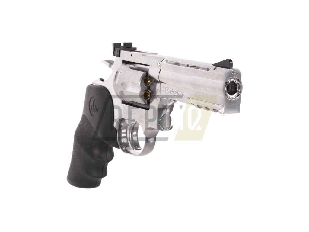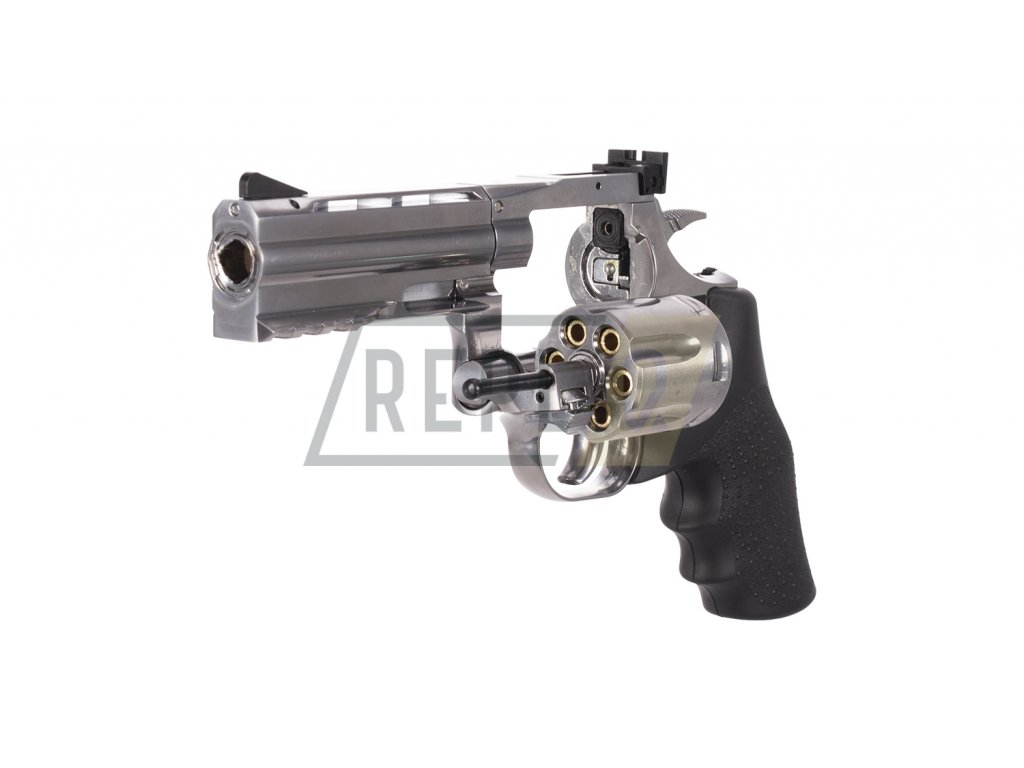 Revolver má spoušť typu Double Action, kterou zajišťuje bezpečnostní pojistka umístěná za kohoutkem. Zbraň je určena pro střelbu diabolkami ráže 4,5 mm. Ty se nabíjejí do zadní části nábojnic a následně vkládají do bubínku. Ten vyklopíte pomocí pojistky na levé části zbraně.