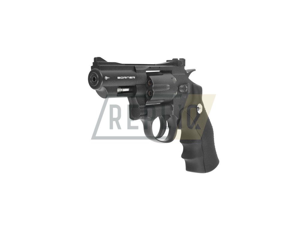 Vzduchový revolver Borner Super Sport je poháněn bombičkou CO2 12g, která se vkládá do rukojeti revoleru. Vše je elegantně skryto včetně tlačného šroubu bombičky, aby nebyl rušen autentický vzhled zbraně.