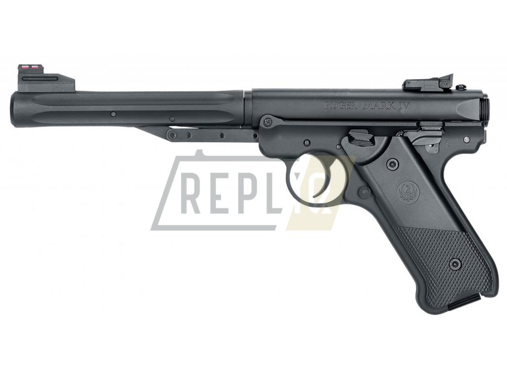 Ruger Mark IV, zlamovací jednoranná vzduchová pružinová pistole s automatickou pojistkou po nabití. Ruger Mark IV je vzduchovkovou replikou se všemi originálními logy stejnojmenné sportovní malorážkové pistole. Pistole je vyrobena s precizností a pozorností k detailům, aby věrně reprodukovala vzhled a pocit skutečné zbraně