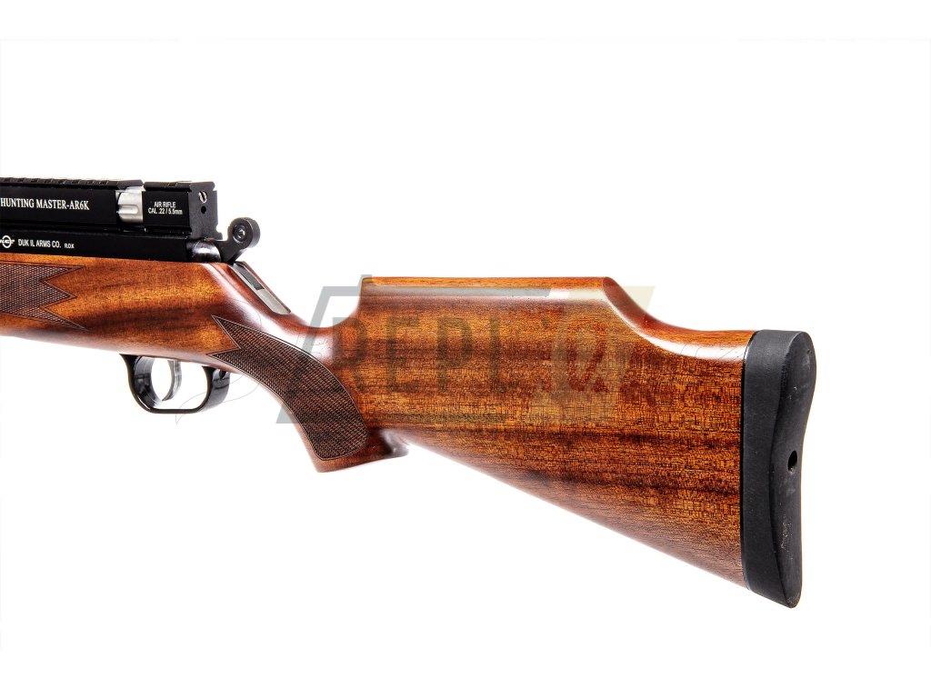 Verze AR6K má oproti modelu AR6 nižší hmotnost a kompaktnější rozměry. Krásnou pažbu z tureckého dřeva Sepetia doplňuje oboustranná lícnice Monte Carlo, která je vhodná pro praváky i leváky. Na konci pažby je umístěna gumová botka pro absorpci zpětných rázů.
