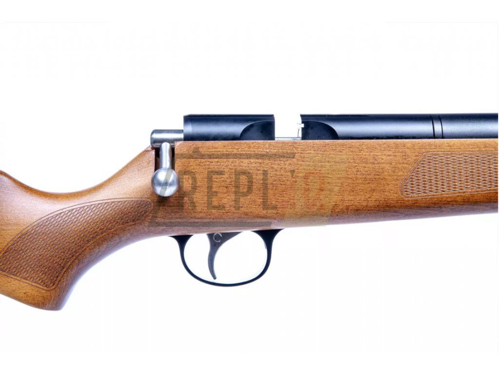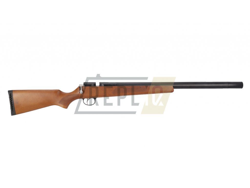 Na vyústění hlavně s kartuší je již integrovaný moderátor hluku, který opravdu funguje. Hlaveň je dlouhá 610 mm a zaručuje přesnou střelbu. Větrovka je osazena jednorannou redukci a v balení naleznete také zásobník. Plnění je pomocí klasického pinu, ke kterému potřebujete dokoupit rychlospojku.