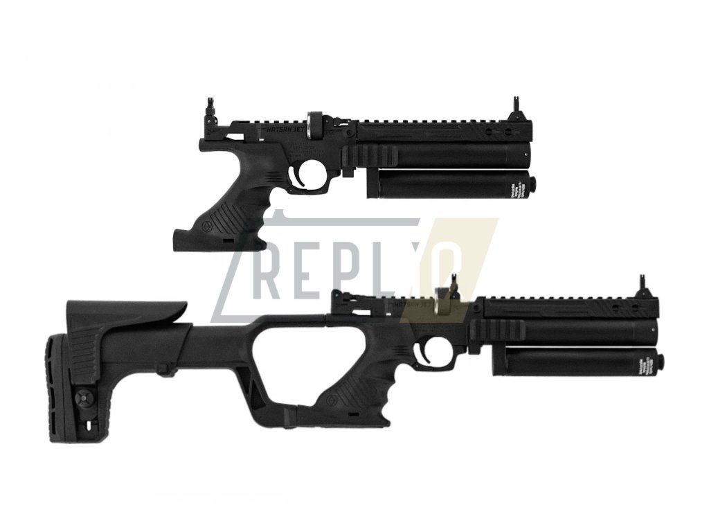 Hatsan Jet II je výkonná pistole, kterou je možné snadno přeměnit na karabinu díky dodávané pažbě.