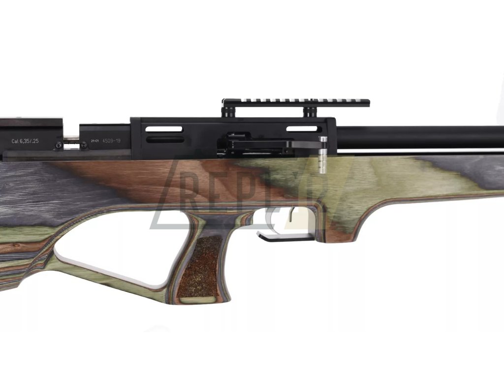 Již v základu je vybaven dřevěnou lícnici, regulátorem tlaku se svým vlastním manometrem a bočním biatlonovým přebíjením.
