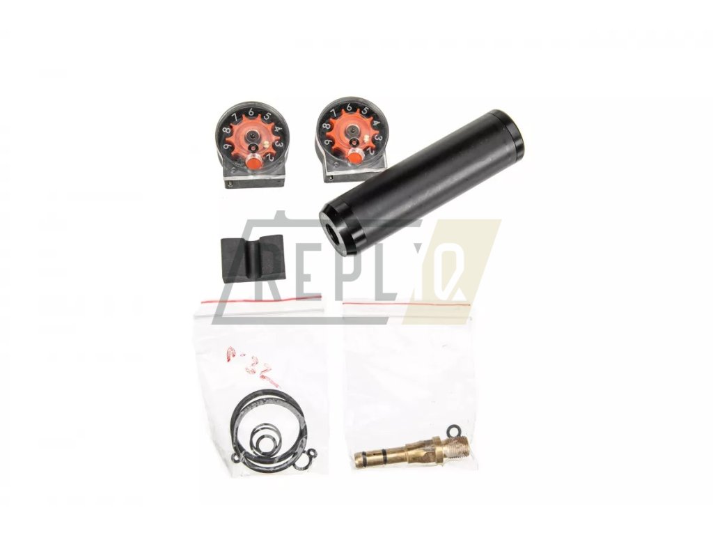 PX-5 Sport se dodává s velkým množstvím příslušenství. V balení naleznete sadu imbusových klíčů, dva zásobníky na devět ran, kovové podložky, těsnění, ventil, jednorannou redukci a moderátor.