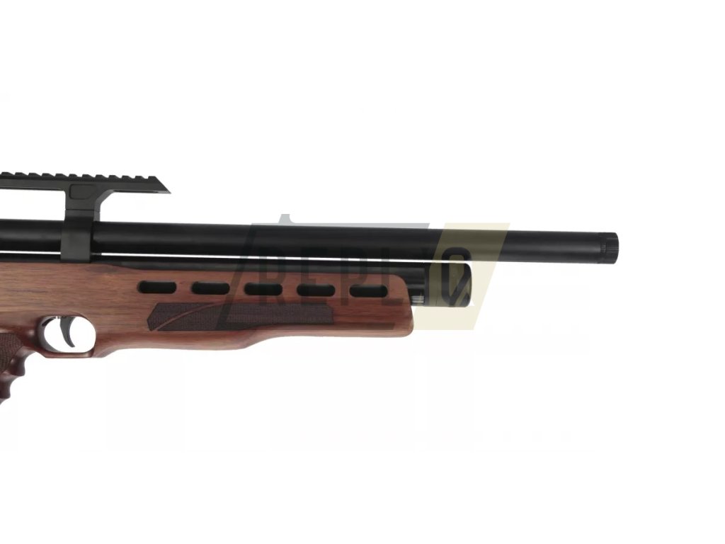 Skvělá semi-auto PCP vzduchovka střední třídy s výkonem až 60J, což zajistí přesnou střelbu na dlouhé vzdálenosti a dostatečnou účinnost při likvidaci škůdců.Po stránce ergonomie výrobce odvedl skvělou práci, zejména pistolová rukojeť dobře padne do ruky. Masivní pažba má krásnou texturu dřeva a v místě úchopu je zdrsněna pěknou rybinou. Na konci ji zakončuje gumová botka. Kartuše má maximální pracovní tlak 250 bar. Plní se pomocí rychlospojky (součást balení), kterou stačí našroubovat na hadici pumpy nebo láhve.
