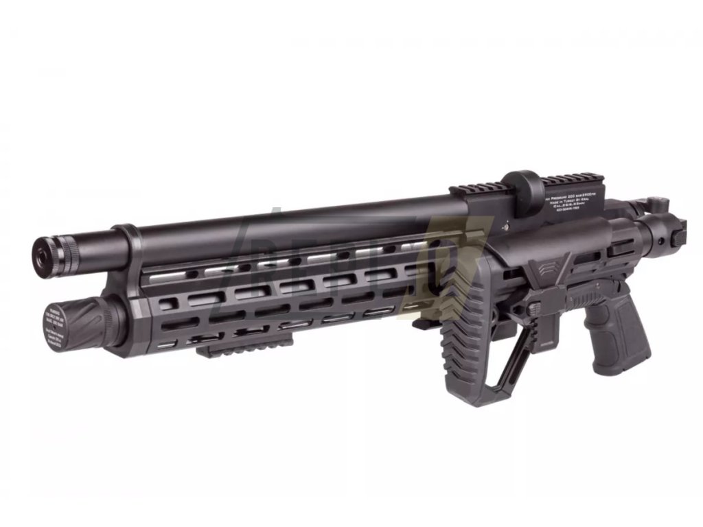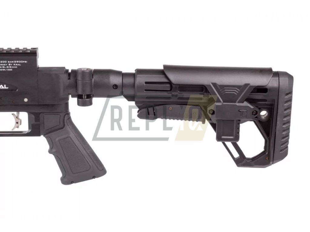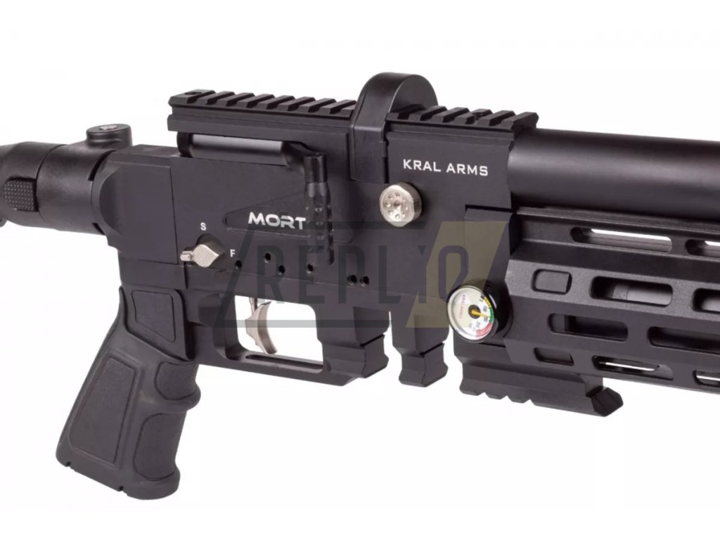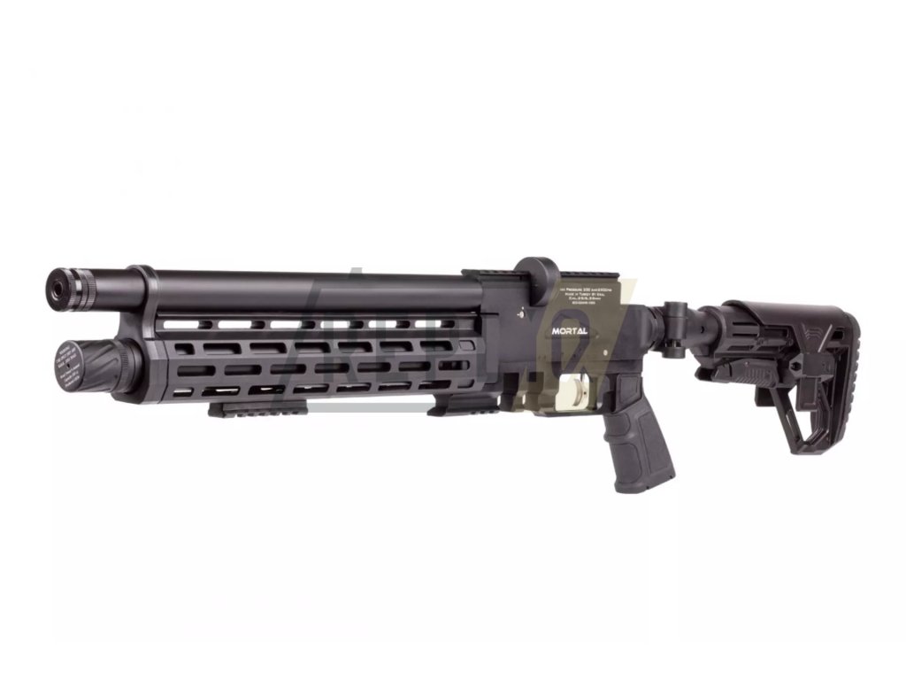 Mortal S je takticky laděná PCP vzduchovka od tureckého výrobce Kral Arms. Zbraň je osazena sklopnou pažbou typu AR-15 s výškově stavitelnou lícnicí a gumovou botkou. Pažba je také výsuvná, takže si můžete jednoduše upravit její délku.Oplášťovaná hlaveň má délku 407 mm a na ústí najdete závit 1/2 UNF pro případnou montáž externího moderátoru hluku. Nabíjecí páka je umístěna z pravé strany a před ní se nachází otočný šroub pro regulaci výkonu. Ten lze nastavit v rozmezí od 10 J do 38 J.