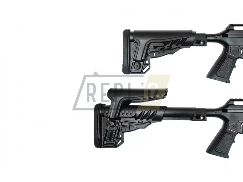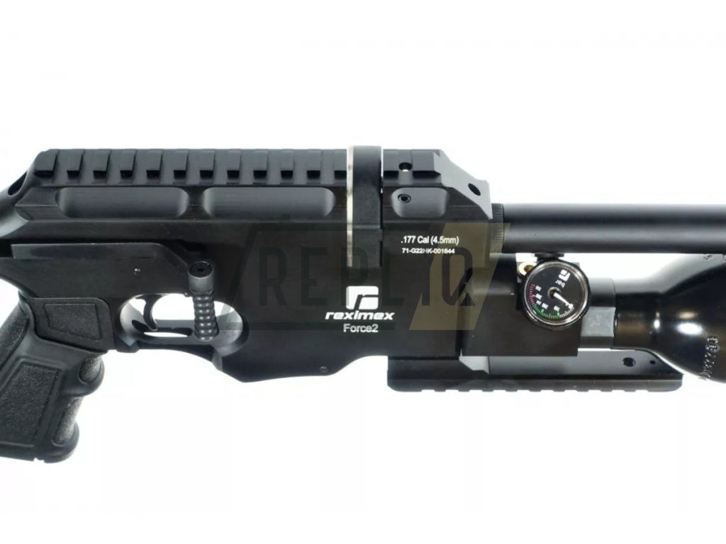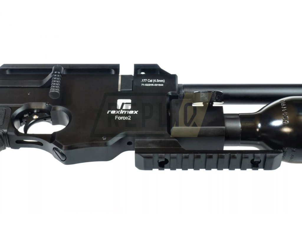 Moderně zpracovaná vzduchovka Reximex Force 2 je výrazně inspirovaná designem zbraní AR, o čemž svědčí typická taktická konstrukce s pistolovou rukojetí a teleskopickou pažbou s nastavitelnou botkou a lícnicí. Díky širokým možnostem nastavení si ji tak snadno přizpůsobíte svým potřebám.Při střelbě využívá vzduchovka umístěnou po pravé straně přímotažnou přebíjecí páčku (Side Lever). Diabolky se vkládají do rotačního zásobníku a následně do komory, aby pak mohly nabrat optimální úsťovou rychlost v drážkované hlavni s délkou 480 mm zakončené standardním závitem 1/2 UNF pro eventuální instalaci moderátoru.