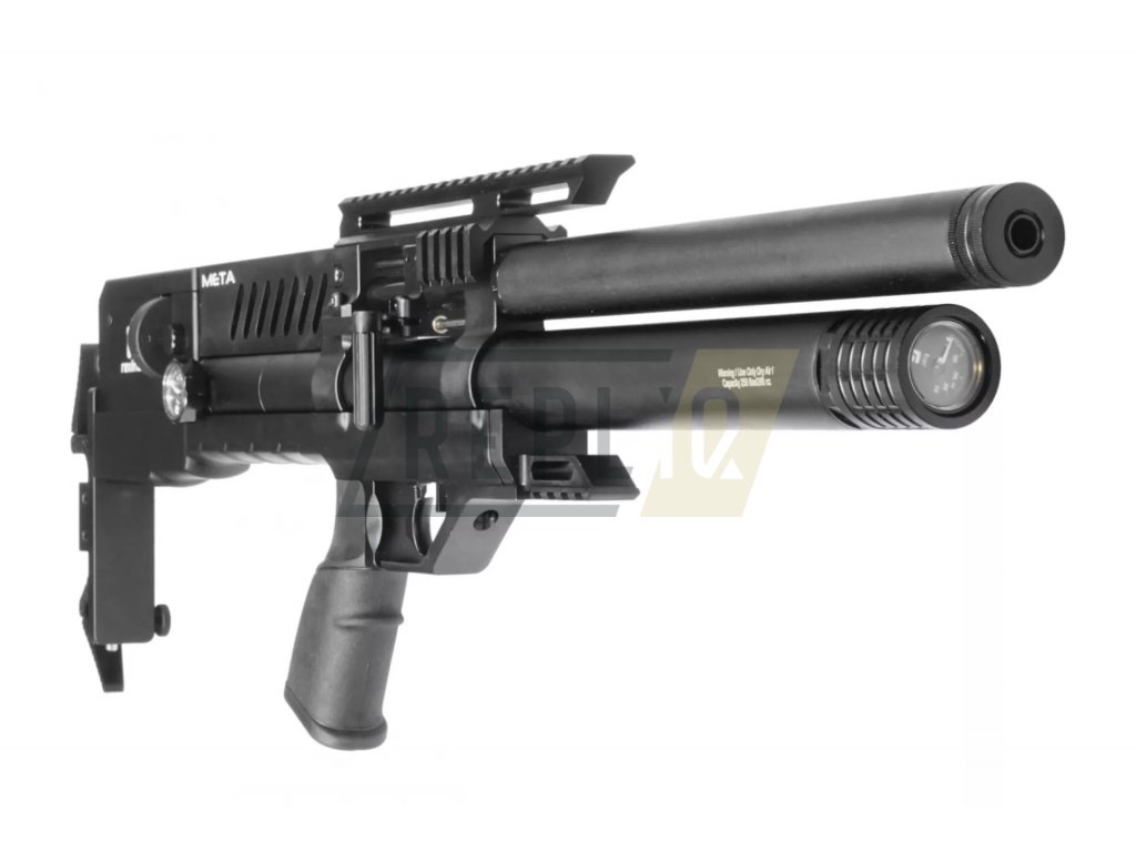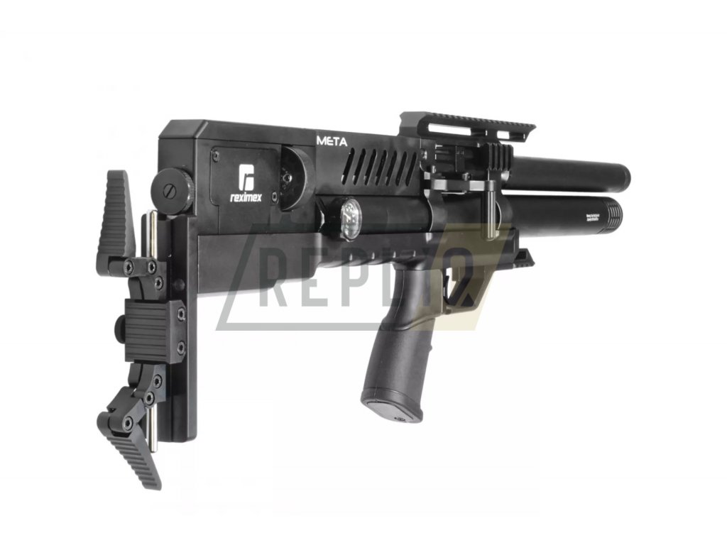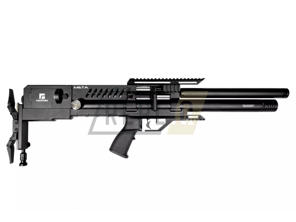 Reximex Meta je vzduchovka v konfiguraci bullpup, která na první pohled zaujme kvalitně zpracovanou a kompletně vytvořenou z hliníkových komponentů konstrukcí s výjimkou polymerového gripu pistolové rukojeti.