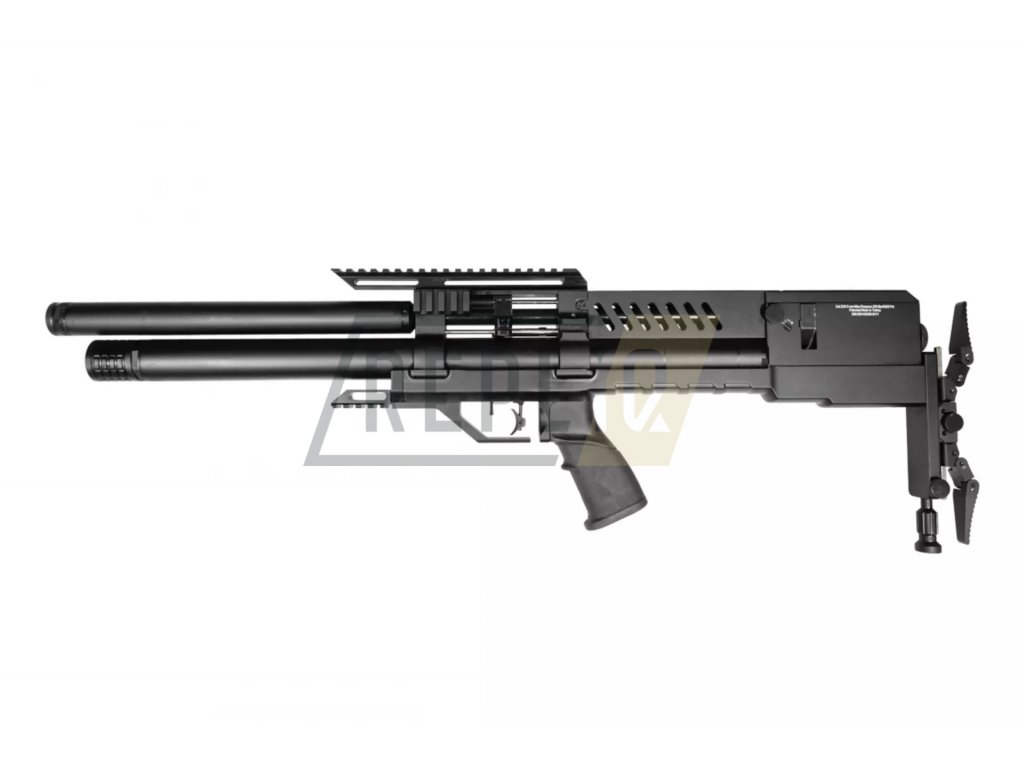 Na samém konci přebíjecího mechanismu spolupracujícího se zásobníkem na 10 diabolek ráže 6,35 mm nebo jednoranou redukcí se nachází nastavovací šroub bicí pružiny. Naopak na jeho boku nalezneme kolečko pro nastavení výkonu vzduchovky s maximální nastavitelnou hodnotou 49 J. S ohledem na větší komfort přebíjecí páčka je umístěna více vpředu - na úrovni pistolové rukojeti.