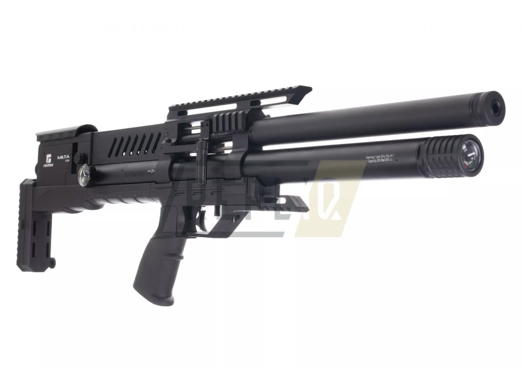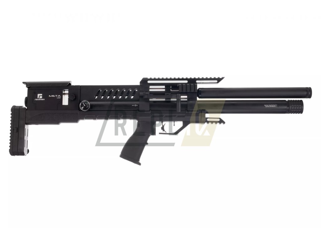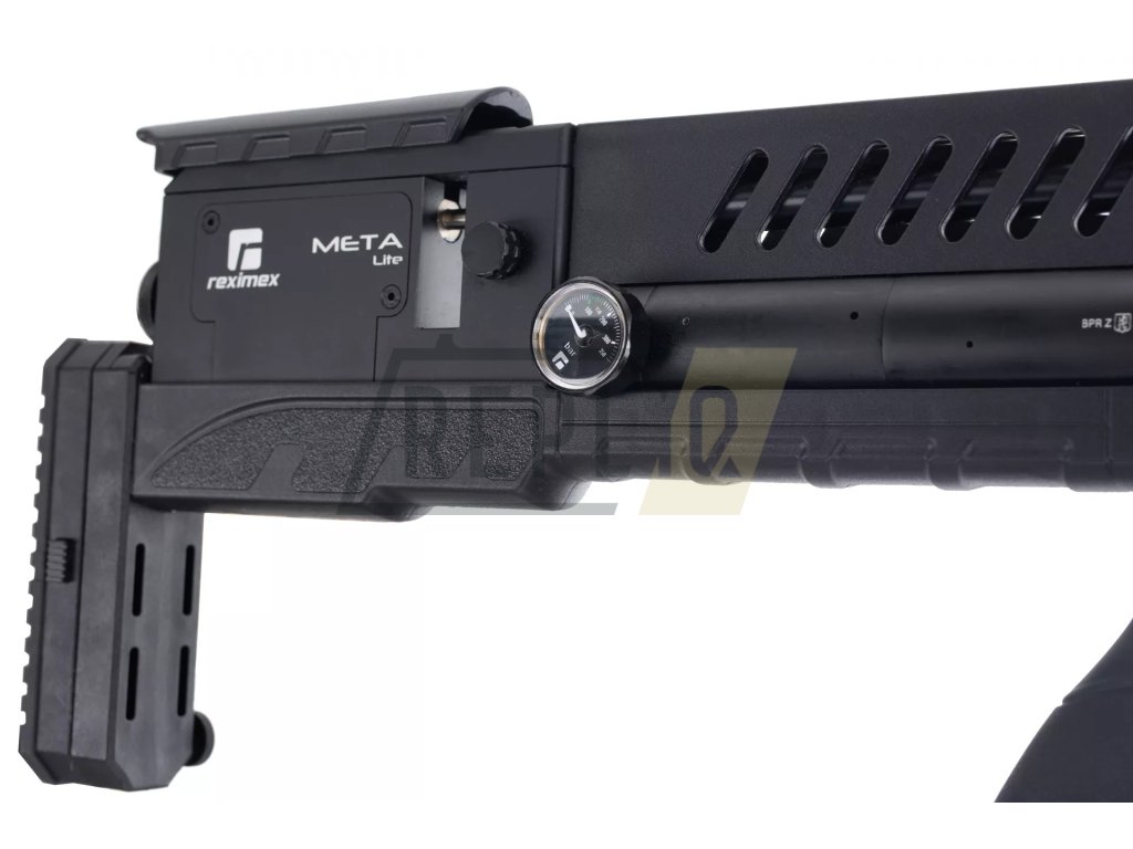 Reximex Meta je vzduchovka v konfiguraci bullpup, která na první pohled zaujme kvalitně zpracovanou a kompletně vytvořenou z hliníkových komponentů konstrukcí s výjimkou polymerového gripu pistolové rukojeti. Na rozdíl od klasické verze je vybavena pouze základní botkou s nastavením výšky.