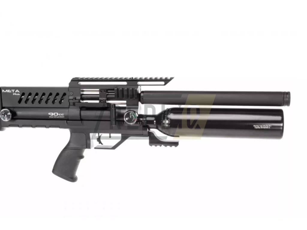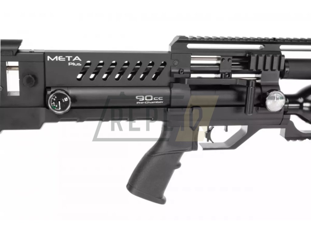 Reximex Meta Plus je vzduchovka v konfiguraci bullpup, která na první pohled zaujme kvalitně zpracovanou a kompletně vytvořenou z hliníkových komponentů konstrukcí s výjimkou polymerového gripu pistolové rukojeti.