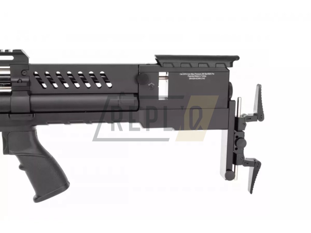 Na samém konci přebíjecího mechanismu spolupracujícího se zásobníkem na 10 diabolek ráže 6,35 mm nebo jednorannou redukcí se nachází nastavovací šroub bicí pružiny. Na jeho boku pak nalezneme kolečko pro nastavení výkonu vzduchovky s maximální nastavitelnou hodnotou 49 J. S ohledem na větší komfort přebíjecí páčka je umístěna více vpředu - na úrovni pistolové rukojeti.