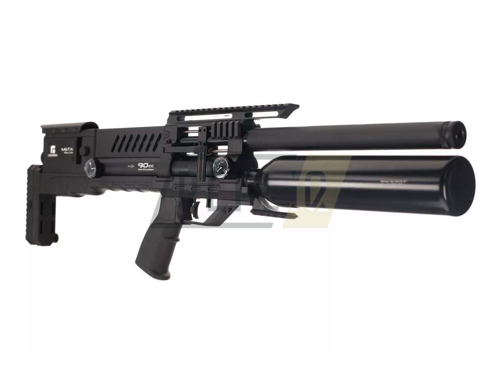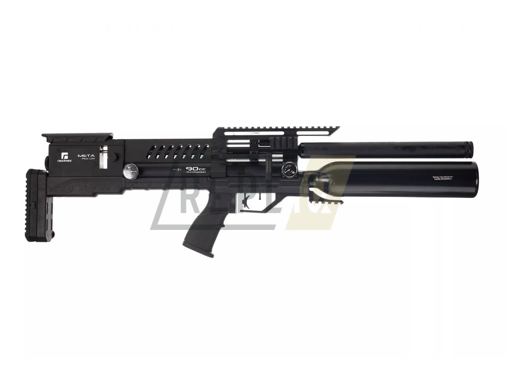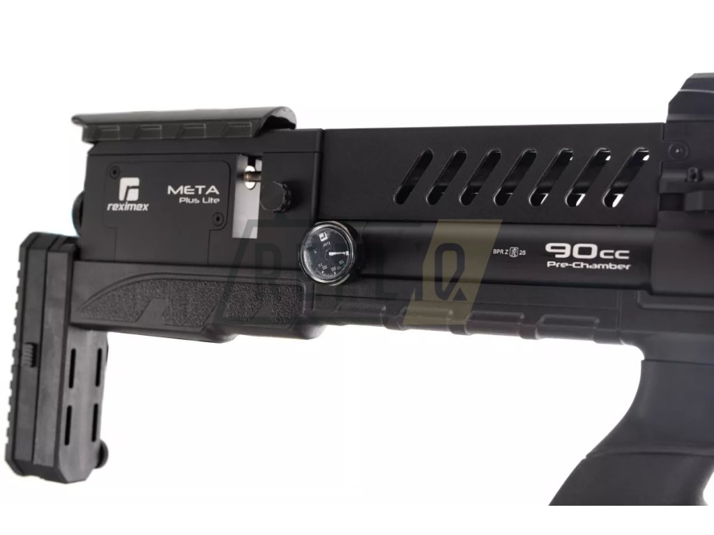 Reximex Meta Plus Lite je vzduchovka v konfiguraci bullpup, která na první pohled zaujme kvalitně zpracovanou a kompletně vytvořenou z hliníkových komponentů konstrukcí s výjimkou polymerového gripu pistolové rukojeti. Na rozdíl od klasické verze je vybavena pouze základní botkou s nastavením výšky.Na samém konci přebíjecího mechanismu spolupracujícího se zásobníkem na 12 diabolek ráže 5,5 mm nebo jednorannou redukcí se nachází nastavovací šroub bicí pružiny. Na jeho boku pak nalezneme kolečko pro nastavení výkonu vzduchovky s maximální nastavitelnou hodnotou 42 J. S ohledem na větší komfort přebíjecí páčka je umístěna více vpředu - na úrovni pistolové rukojeti.