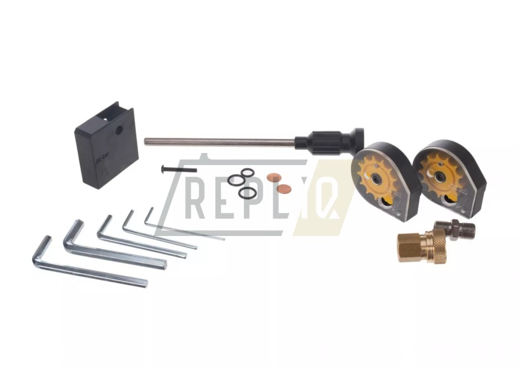 Společně se vzduchovkou dostaneme dva zásobníky, plnící adaptér quick fill a jednorannou redukci.
