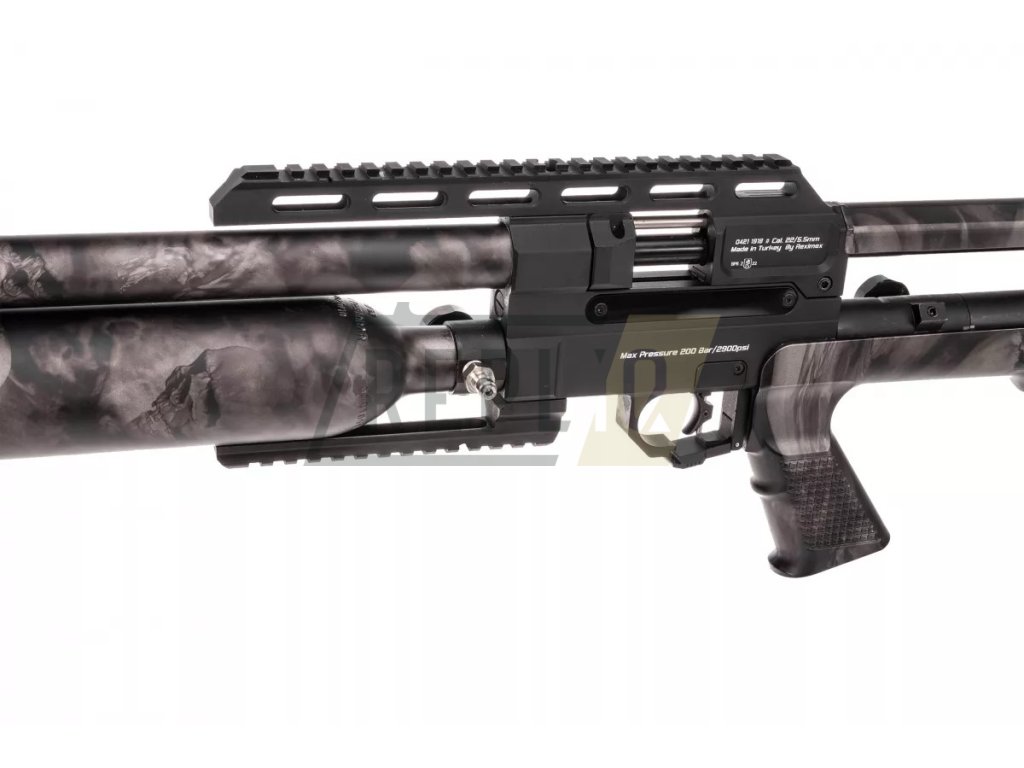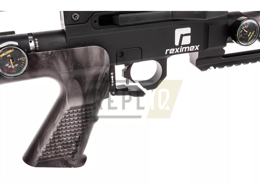 Bullpup větrovka s moderním vzhledem od tureckého výrobce Reximex. Hlaveň je obalena pláštěm, který slouží zároveň jako moderátor hluku. Zakončena je závitem 1/2 UNF. K pohodlné montáži puškohledu slouží kombinovaná 11mm a 22mm lišta.Dostatek výstřelů na jedno naplnění zajistí objemná 425 ccm kartuše. K dobré konzistenci střelby přispívá regulátor tlaku. Plastový zásobník pojme celkem 14 diabolek. Spoušť je plně nastavitelná. Manuální pojistka je řešena poněkud netradičně, je totiž zakomponována přímo v lučíku.