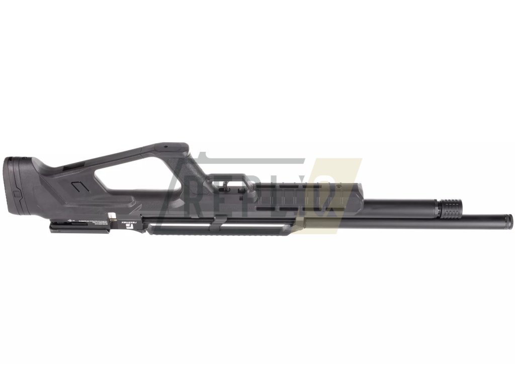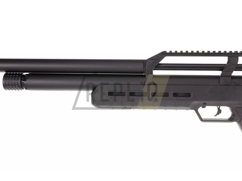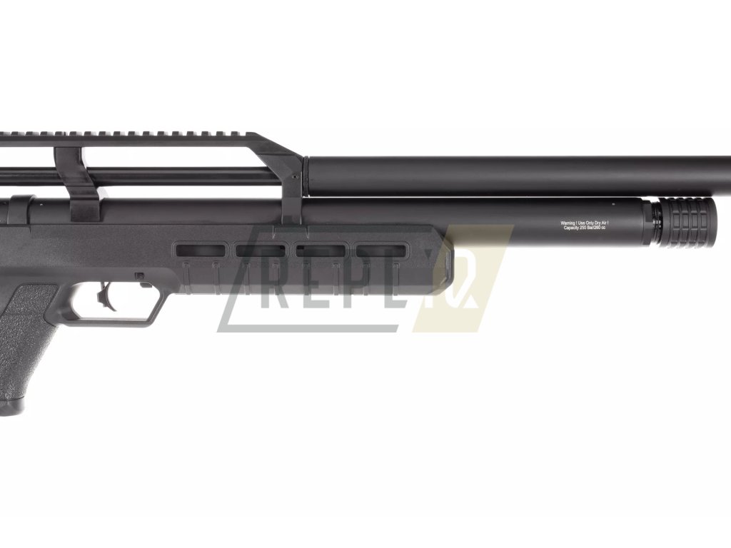 Přebíjecí mechanismus je vybaven klasickou páčkou s prodlouženou rukojetí, jejíž členitý povrch brání klouzání v prstech. Hlaveň s délkou 580 mm je na polovině své délky pokryta integrovaným moderátorem hluku, podél ní se táhne kartuše s objemem 260cc pracující s maximálním plnícím tlakem 250 Bar.Na ústí hlavně nechybí ani závit 1/2 UNF pro montáž externího moderátoru.