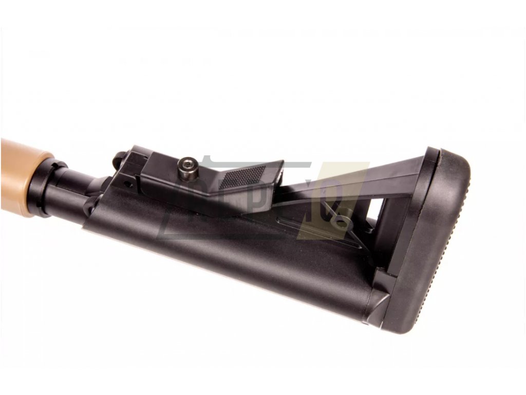 Pistolová rukojeť, pažba i předpažbí jsou vyrobeny z odolného plastu. Pažba je výsuvná po vzoru AR-15. Na předpažbí se nachází praktická weaver lišta vhodná k uchycení například bipodu.