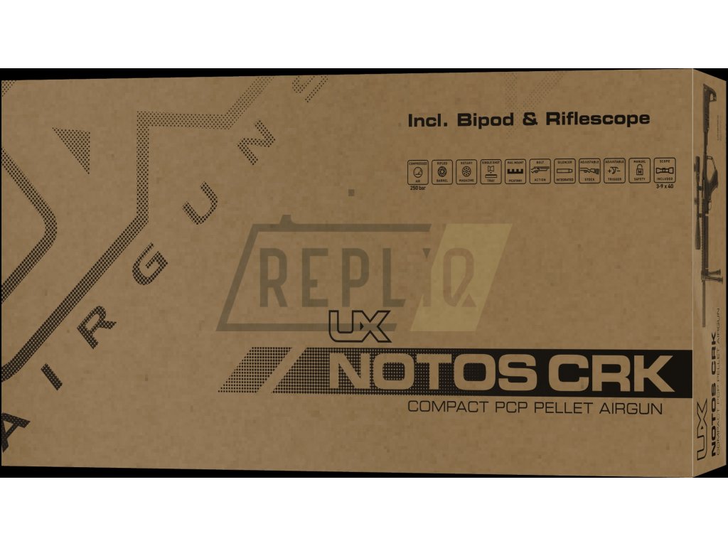 Vzduchovka UX Notos Carbine Set cal.4,5mmUmarex Notos je kompaktní PCP vzduchovka na stlačený vzduch ve vlastním zásobníku pod hlavní s taktickou posuvnou pažbou, puškohledem a dvojnožkou.
