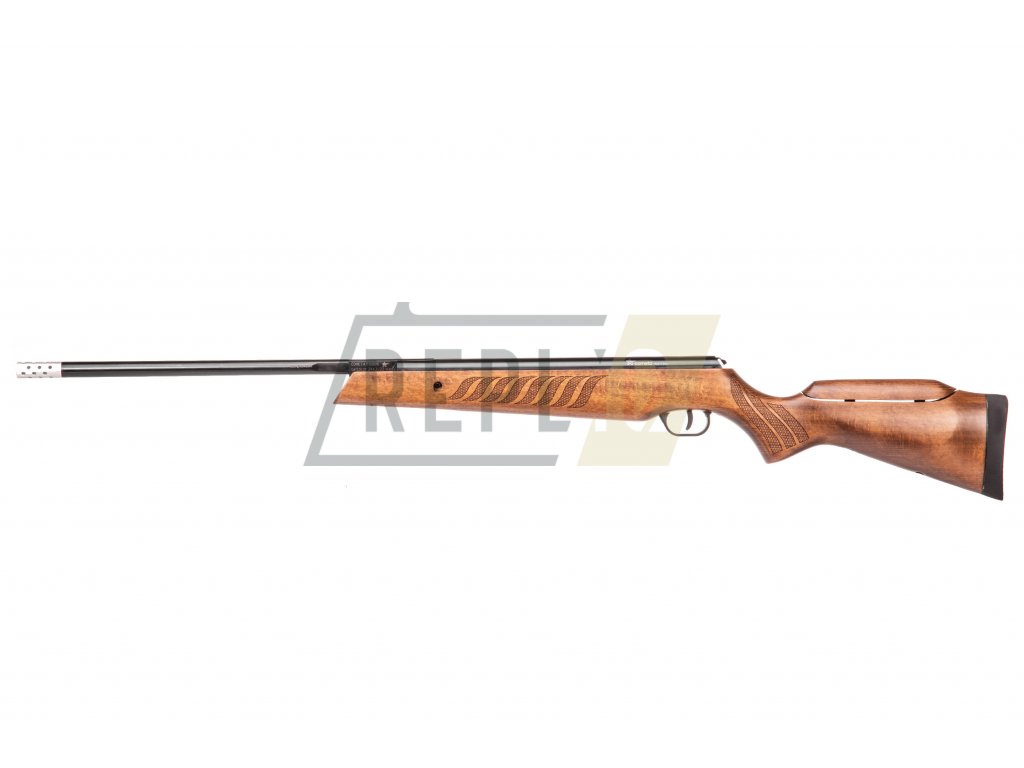 Dominantním elementem vzduchovky je dřevěná pažba zakončená gumovou stopkou. Velkou výhodou pažby je možnost nastavení lícnice. Díky tomu si můžeme přizpůsobit výšku lícnice tak, aby zalícení bylo pro nás maximálně pohodlné. Pro nastavení lícnice je zapotřebí uvolnit dva imbusové šrouby. Gravírované plochy na předpažbí a krčku poskytují jistotu stabilního úchopu dlaní při střelbě.Černěná hlaveň je zakončena kompenzátorem zpětného rázu, díky kterému můžeme dosáhnout větší konzistence střelby. Jelikož tento model není vybaven pevnými mířidly, je nutné dokoupit vhodnou optiku, pro kterou je vytvořena na hřbetu vzduchovky montážní lišta 11 mm - rybina.