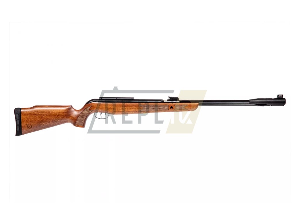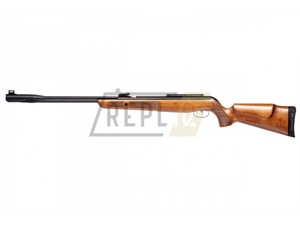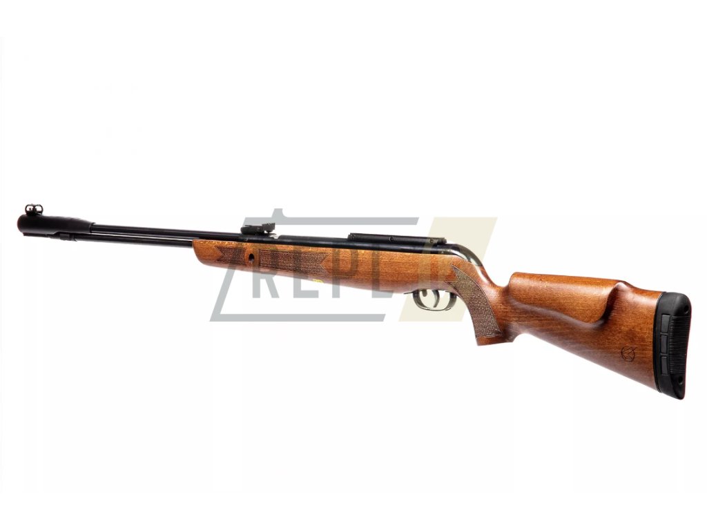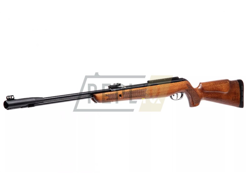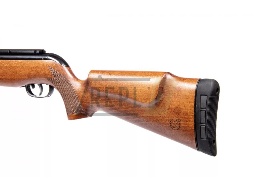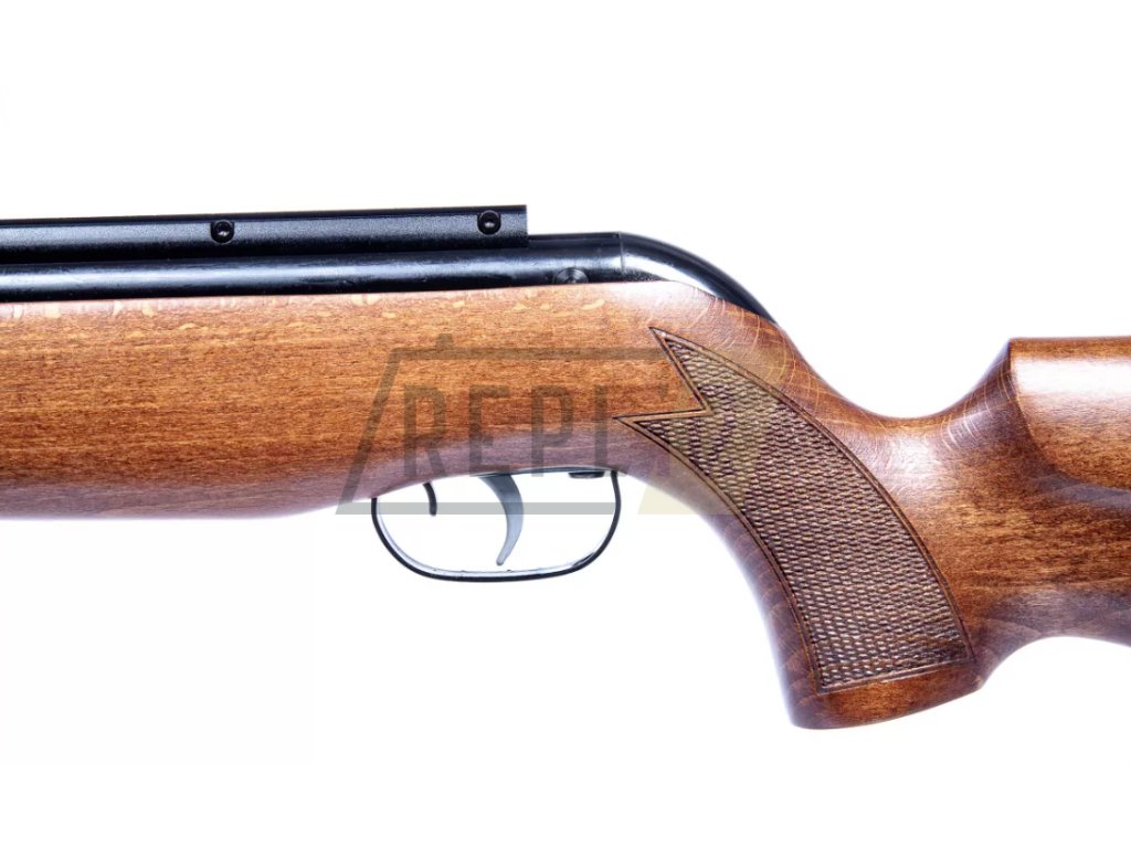 Dominantou zbraně je krásná dřevěná pažba. Vzduchovka je osazena 11mm rybinou pro uchycení puškohledu.