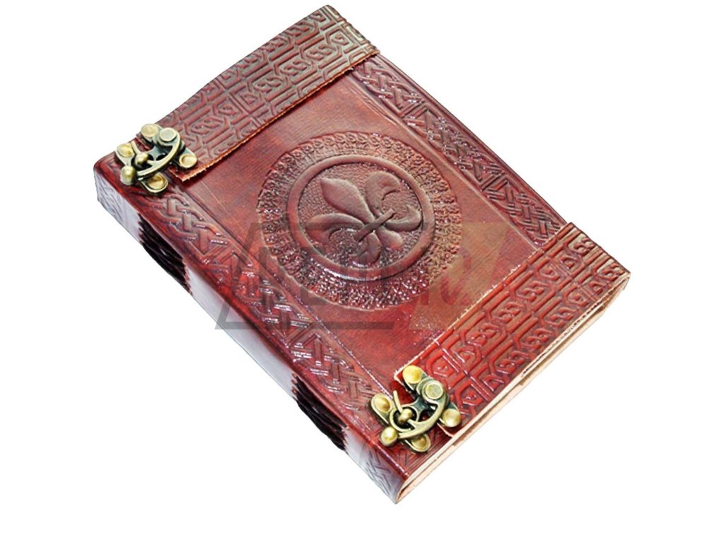 Deník z pravé buvolí kůže s ražbou Fleur de Lys a dvěma zámky 12,5x17,5cm