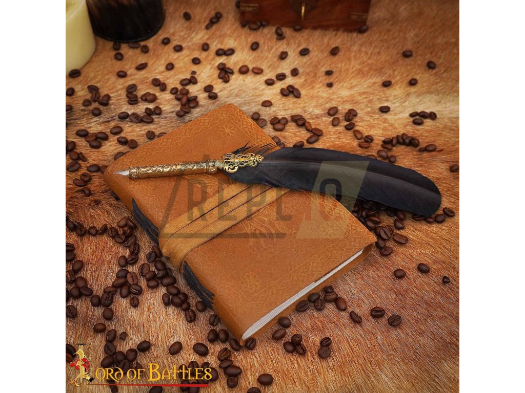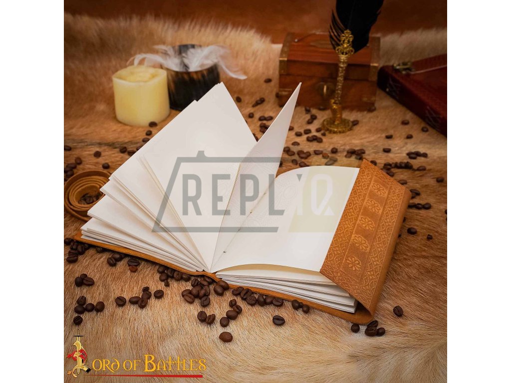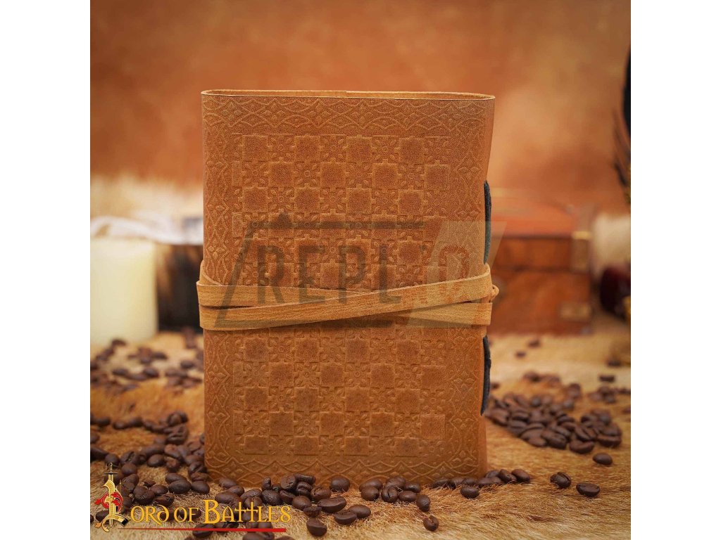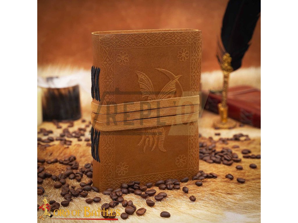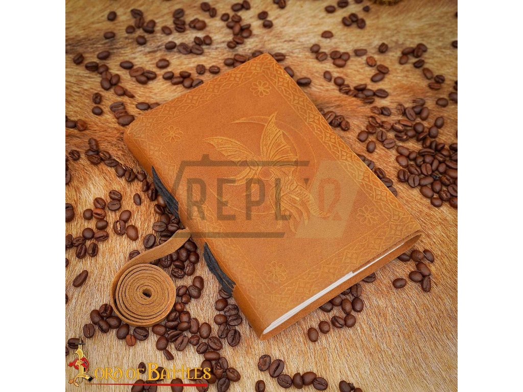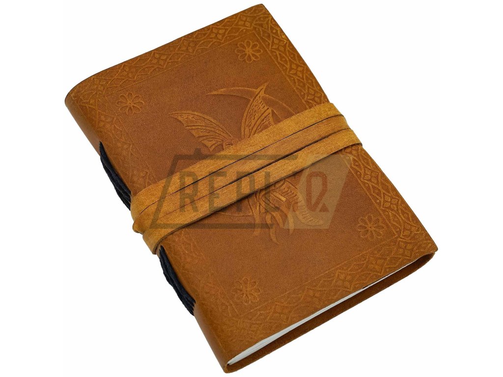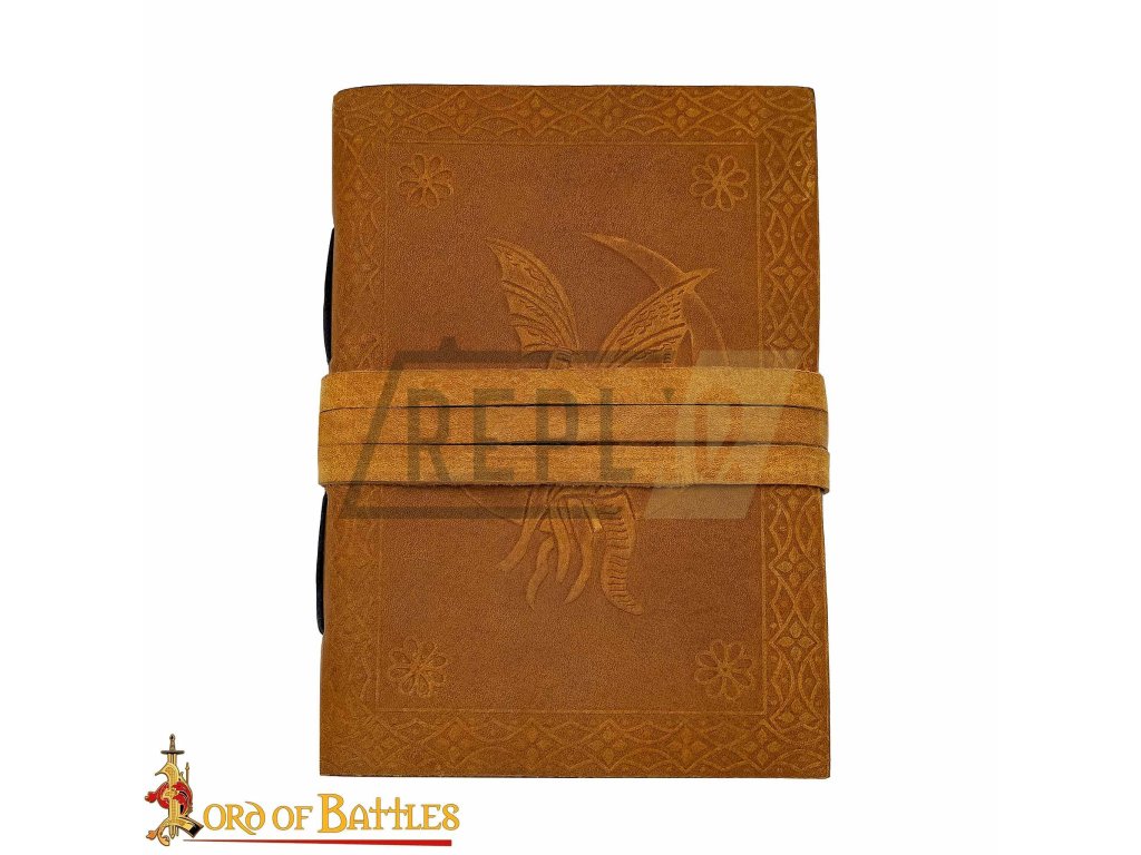 Kožený zápisník s ražbou víly sedící na srpku měsíce
