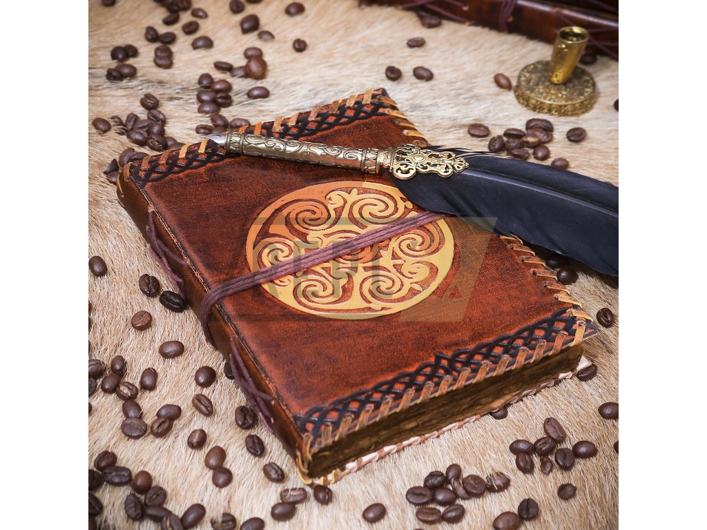 Kožený deník s keltskou spirálou a patinovaným papírem