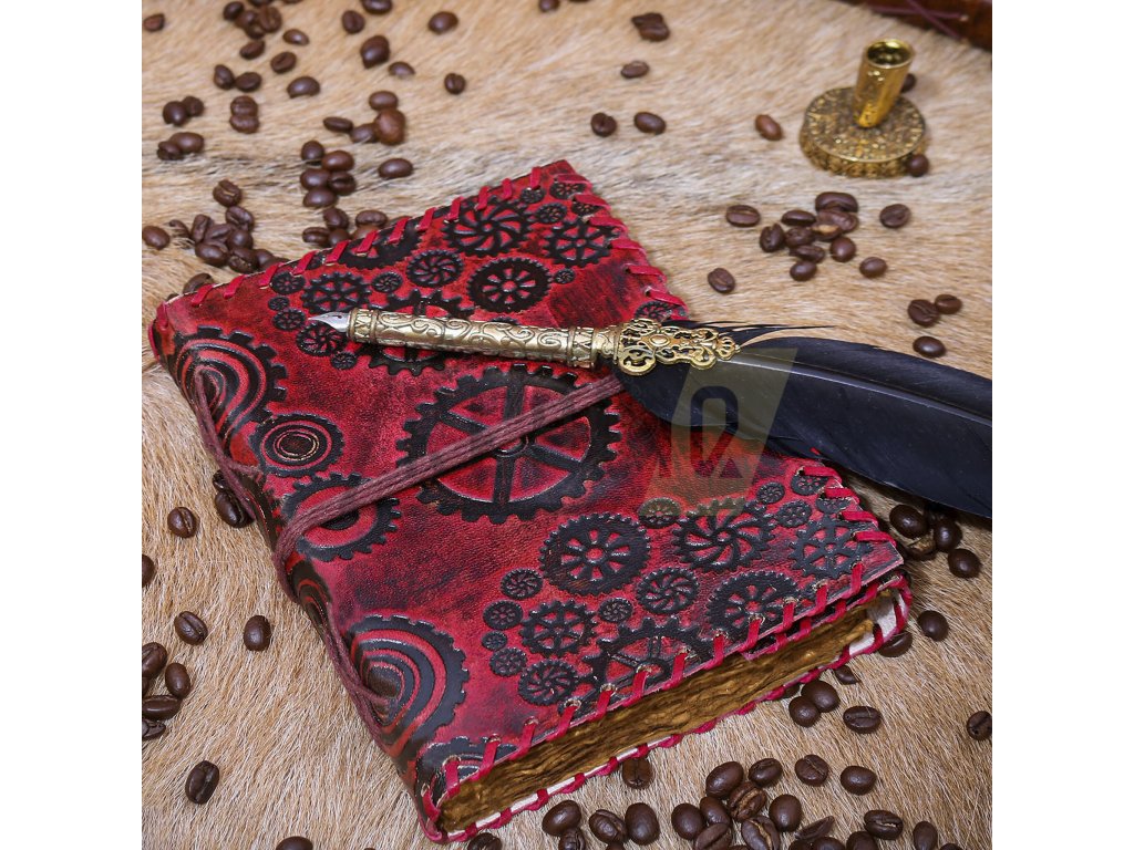 Steampunk deník z kůže – Zápisník s ozubenými koly - Outlet