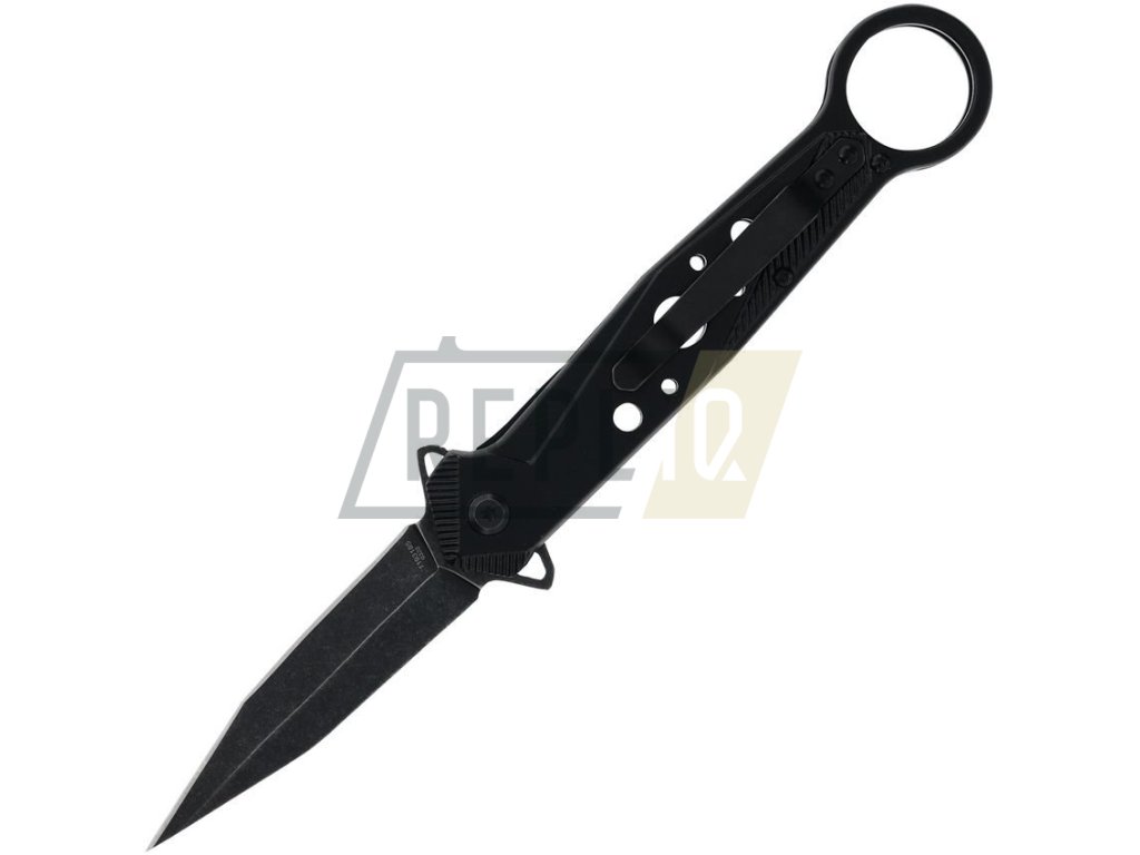 Stylová zavírací dýka s černěným povrchem čepele. Hladké ostří disponuje oboustranným výbrusem a asistovaným otevíráním, které poskytuje možnost rychlého otevření nože jednou rukou. V otevřeném stavu je čepel jištěná pomocí spolehlivé pojistky LinerLock. Rukojeť je příjemně tvarovaná, na jejím konci naleznete ergonomický kroužek zlepšující úchop. Samozřejmostí je kovový klip určený na zavěšení nože.