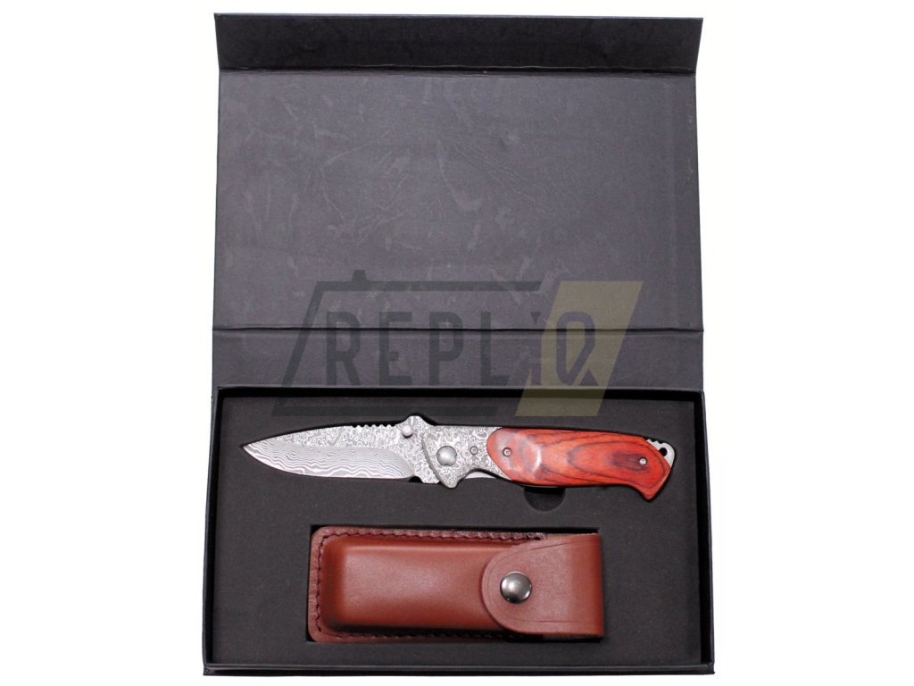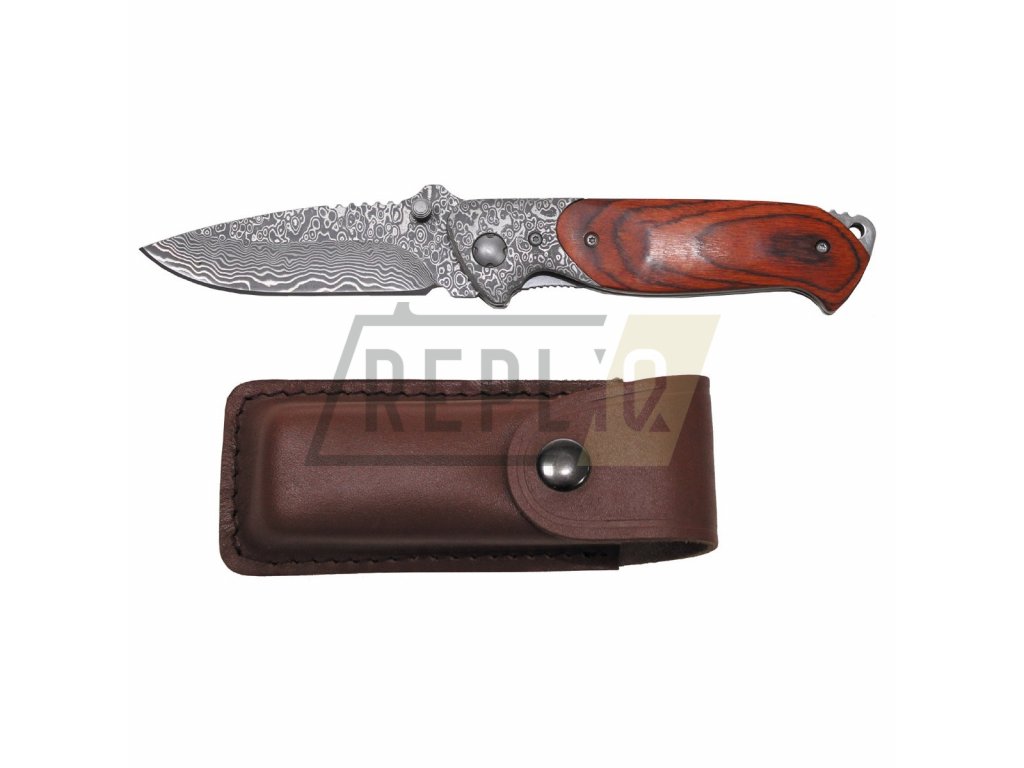 Nůž zavírací "Damašek" dřevěná střenka + kožené pouzdro + Doprava zdarma na další nákup