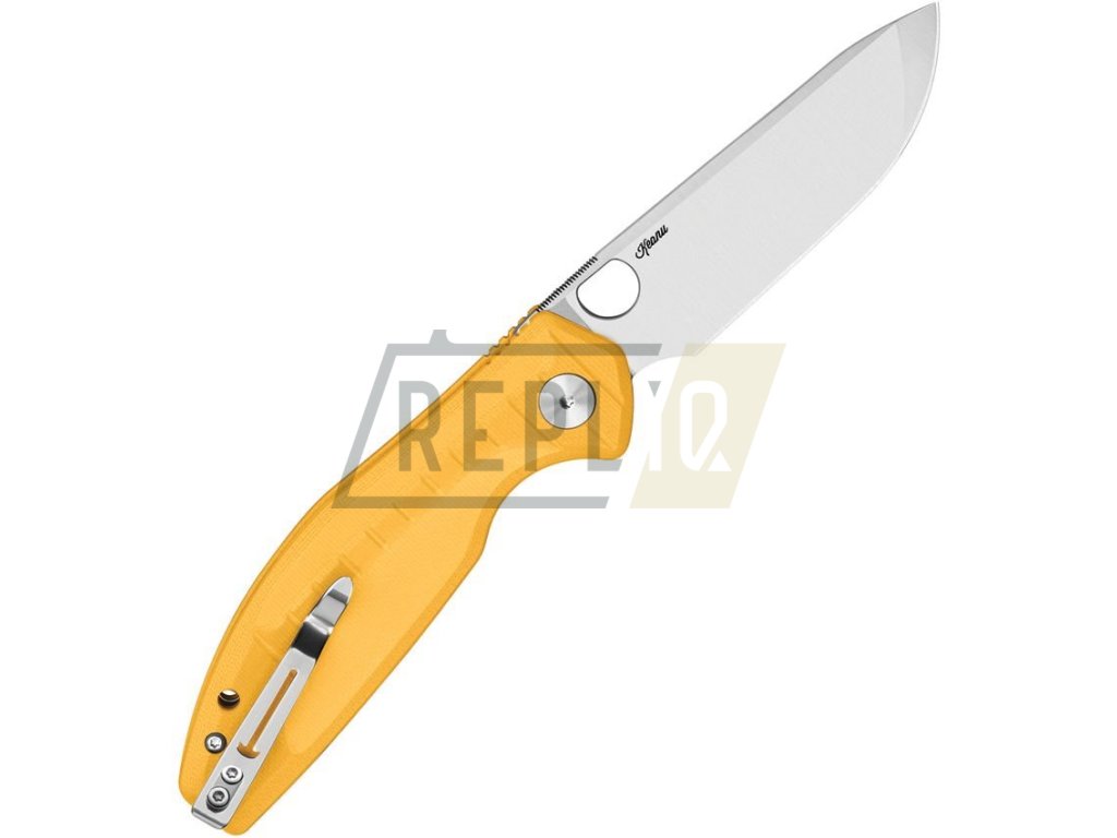 Netradičně vypadající zavírák EDC rozměrů se střenkami vyvedenými ve výrazné žluté barvě. Čepel s hladkým ostřím je vyrobená z kvalitní nástrojové oceli D2 s jemným saténovým finišem. Pro snadné otevírání je čepel opatřena výrazným otvorem v horní části, v zavřeném stavu je nůž jištěný pomocí pojistky typu Button lock. Ovládací tlačítko pojistky je umístěno v přední části rukojeti. Střenky disponují protiskluzovým vzorkem a na jejich výrobu byl použit materiál G10, což je sklolaminát vyráběný ze skelných vláken zapékaných v epoxidové pryskyřici. G10 se vyznačuje mimořádnou pevností a disponuje skvělou přilnavostí i extrémně náročných podmínkách, pod vodou apod. V neposlední řadě je G10 perfektním elektrickým izolantem a výborným tepelným izolantem v horku i chladu. Samozřejmostí je kovový kapesní klip pro snadné přenášení a otvor pro pojistnou šňůru.