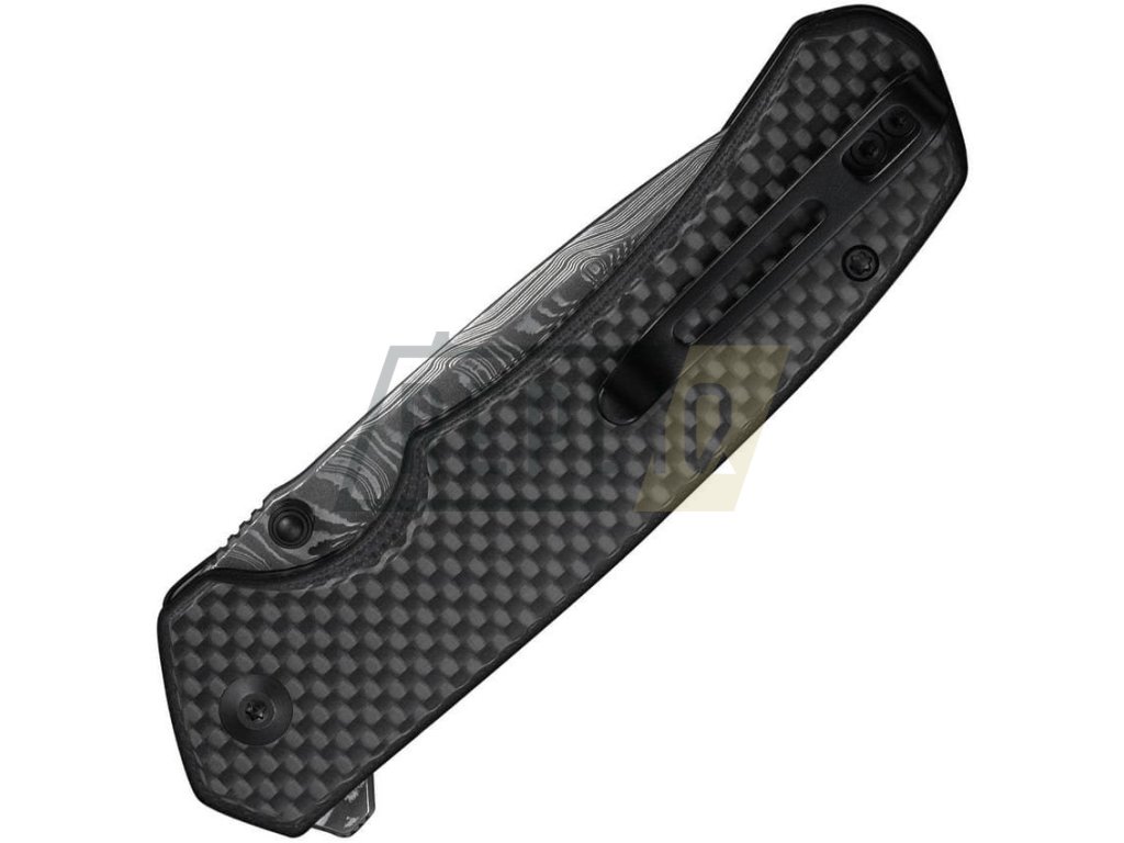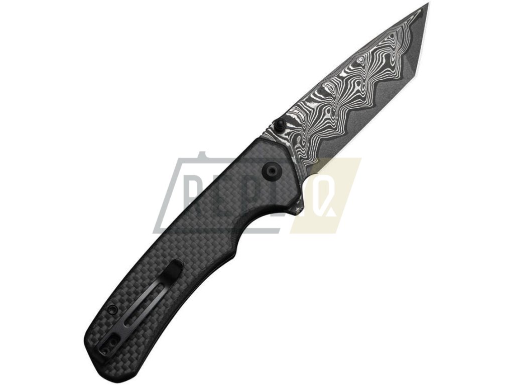 Stylový zavírací nůž s damaškovou čepelí. Čepel tvaru tanto o tvrdosti 58-60 HRC zajišťuje ostrou, ale zároveň robustní špičku. Nůž je opatřen kolíčkem na čepeli a flipperem pro rychlé a spolehlivé otevření. O hladký chod se stará keramické kuličkové ložisko a tlačítková pojistka button lock, která je opatřena pružinkou proti nechtěnému otevření v kapse. Střenky jsou z materiálu G10 potaženým uhlíkovým vláknem. Samotný čep je vložen mezi prodloužený tang čepele pro větší stabilitu a pevnost. Kapesní klip se dá přesunout na pravou i levou stranu nože, proto je vhodný jak pro praváky, tak pro leváky.