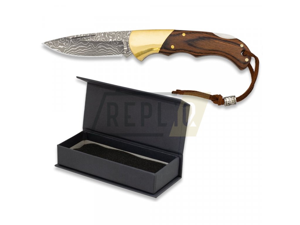 Elegantní zavírací nůž s čepelí z damaškové ocele. Rukojeť je vyrobená ze dřeva, na jejím konci je umístěný otvor, kterým je provlečený provázek (kůže) s kovovým korálkem. Součástí rukojeti je bezpečnostní pojistka BackLock.