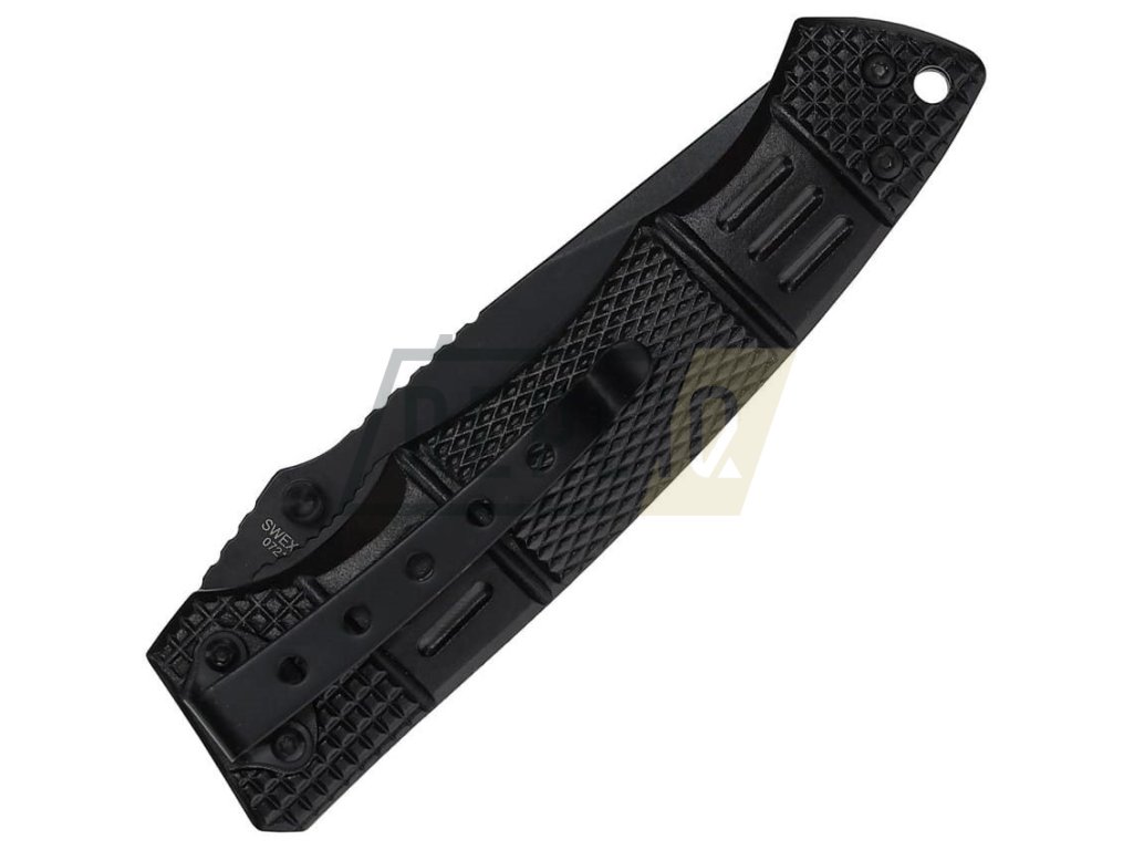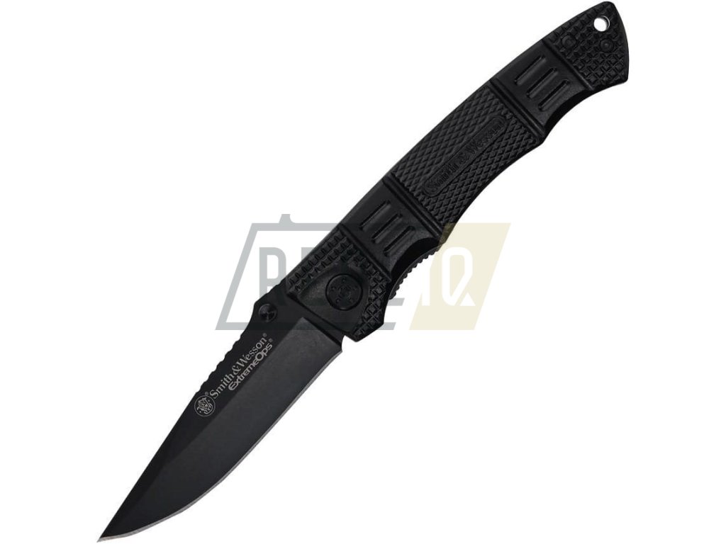 Nůž SWEX3 řady Extreme Operations firmy Smith and Wesson. Nerezová ocel 400 a speciálně potažená hliníková rukojeť. Dírka na šňůrku v zadní části rukojeti.
