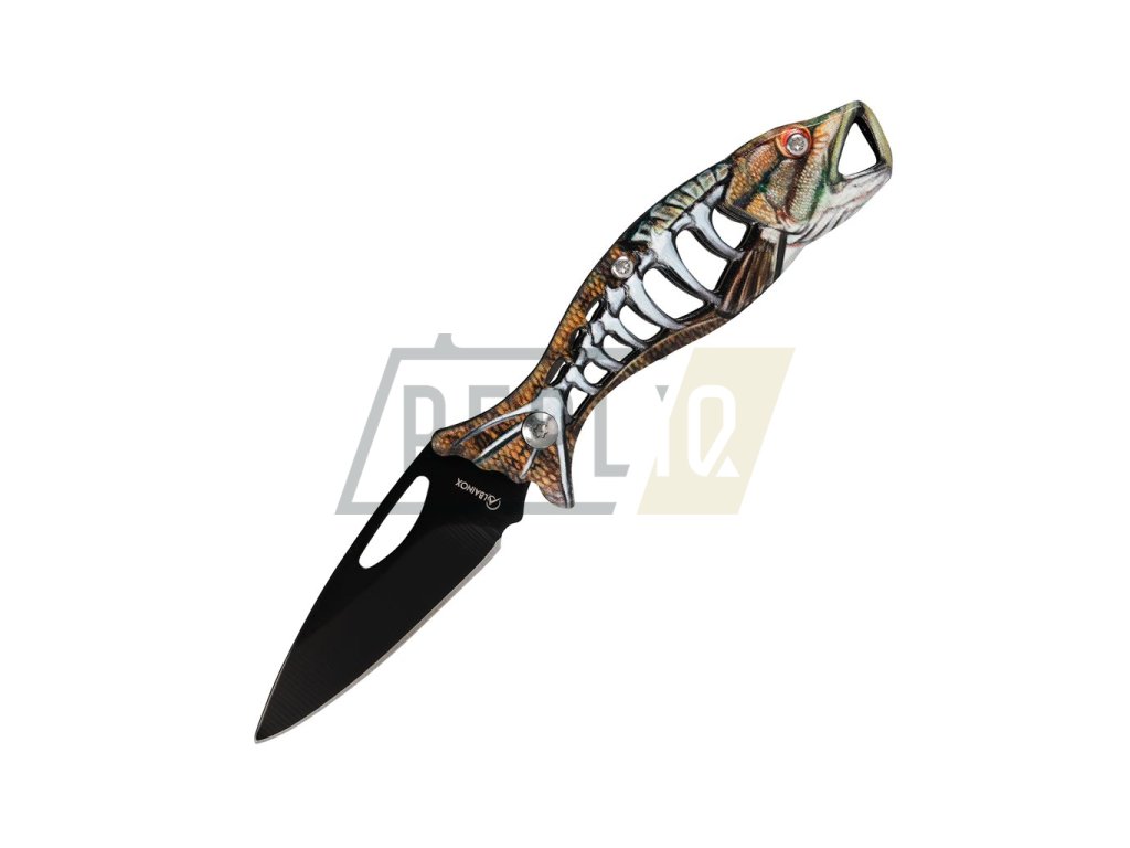 Stylový zavírací nožík s rukojetí vypadající jako ryba. Ideální dárek pro nadšence do rybářství. Čepel s hladkým ostřím je vyrobená z nerezové oceli 3Cr13Mov a disponuje výrazným horním otvorem pro usnadnění otevírání. Barevná rukojeť je vyrobená z hliníku a na jejím konci naleznete výrazný otvor s provlečeným kovovým řetízkem na připevnění ke klíčům.
