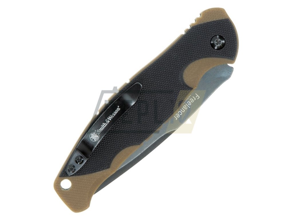 Čepel tvaru "recurved blade" je s hladkým ostřím a černěným povrchem. Rukojeť je vyrobená z odolného a stabilního materiálu G10, které je v tomto případě v černo-hnědém provedení. Povrch rukojeti připomíná tkané plátno. Tato struktura působí protiskluzově, nemusíte se bát, že vám nůž vyklouzne z ruky, i když budete pracovat v rukavicích. Na zadní straně je kovový kapesní klip, na konci rukojeti je otvor pro provlečení šňůrky. Součástí nože je tlačítková pojistka, která zajistí nůž i v zavřené poloze.