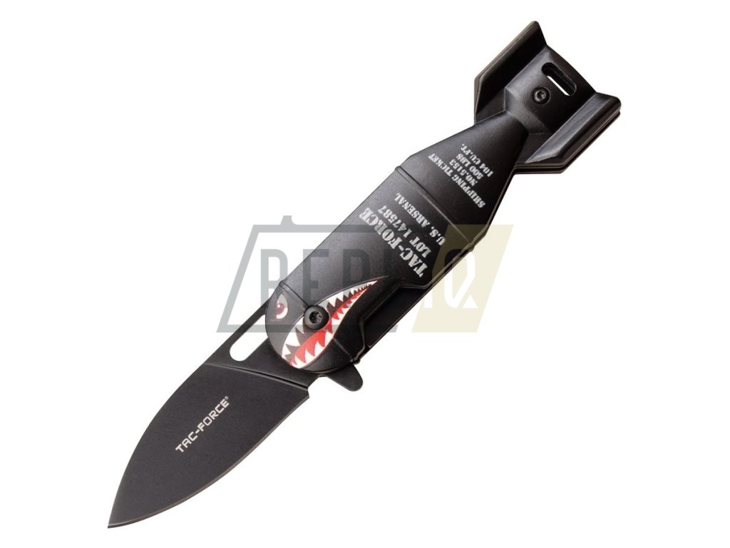 Kapesní zavírací nůž ve tvaru letecké pumy.