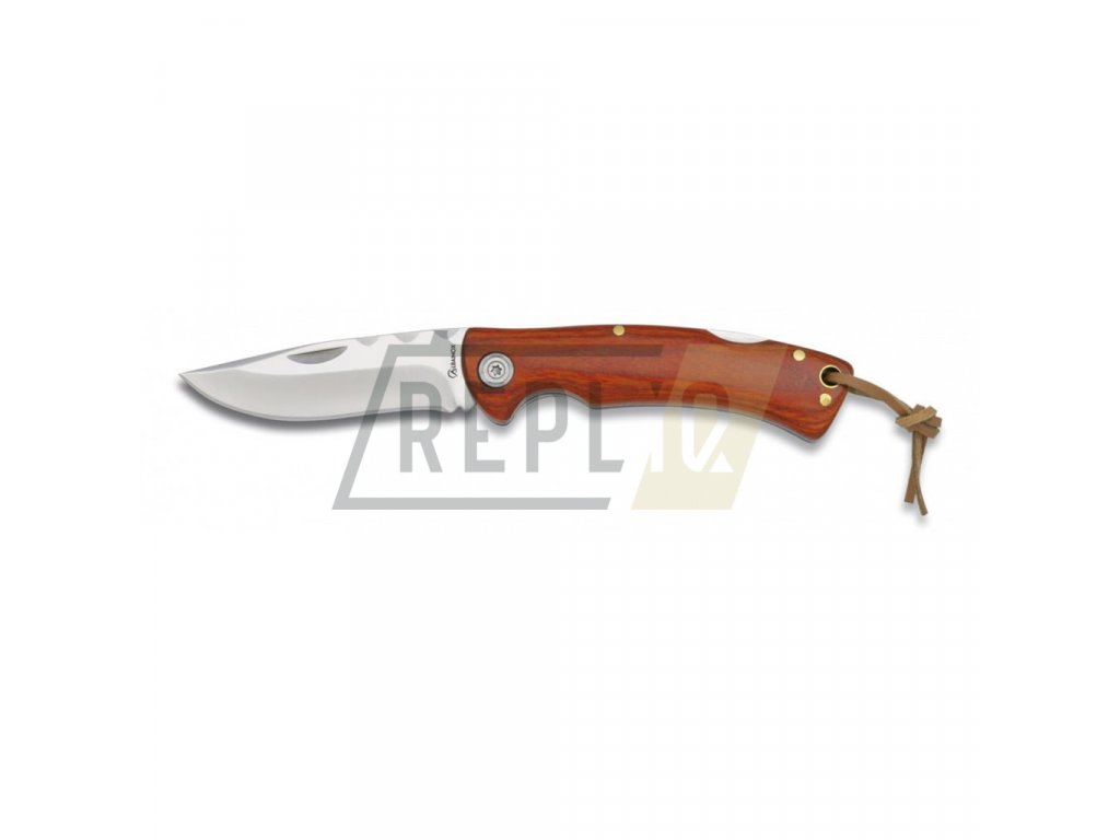 Příjemně tvarovaný kapesní nůž s čepelí s hladkým ostřím. Na čepeli zářez, který pomáhá s otevřením nože. Na konci ergonomicky tvarované rukojeti otvor s provlečenou šňůrkou.