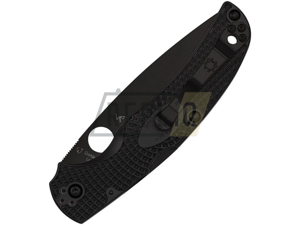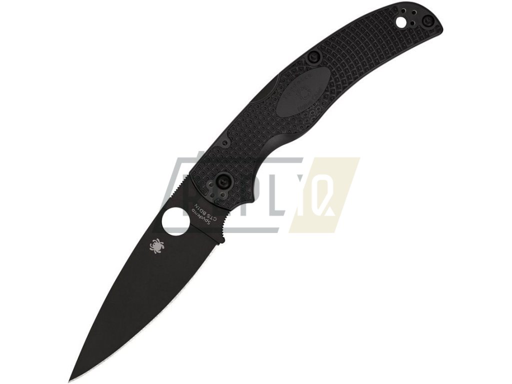 Zavírací nůž v celočerném provedení. Hladká čepel s hladkým (full flat) výbrusem je vyrobena z oceli CTS-BD1N a opatřena matnou černou povrchovou úpravou DLC. V otevřeném stavu je nůž zajištěn pojistkou Back Lock na hřbetu rukojeti. K otevření nože slouží pro Spyderco typický kruhový otvor v čepeli. Střenky jsou vyrobené z materiálu FRN s texturou pro jistější úchop. Kovový klip pro uchycení za lem kapsy je možné namontovat z levé i pravé strany, na přední i zadní konec rukojeti podle preferencí uživatele. Rukojeť je zakončena otvorem na provlečení pojistné šňůrky. Díky malé tloušťce a nízké hmotnosti se nůž skvěle hodí pro každodenní nošení.
