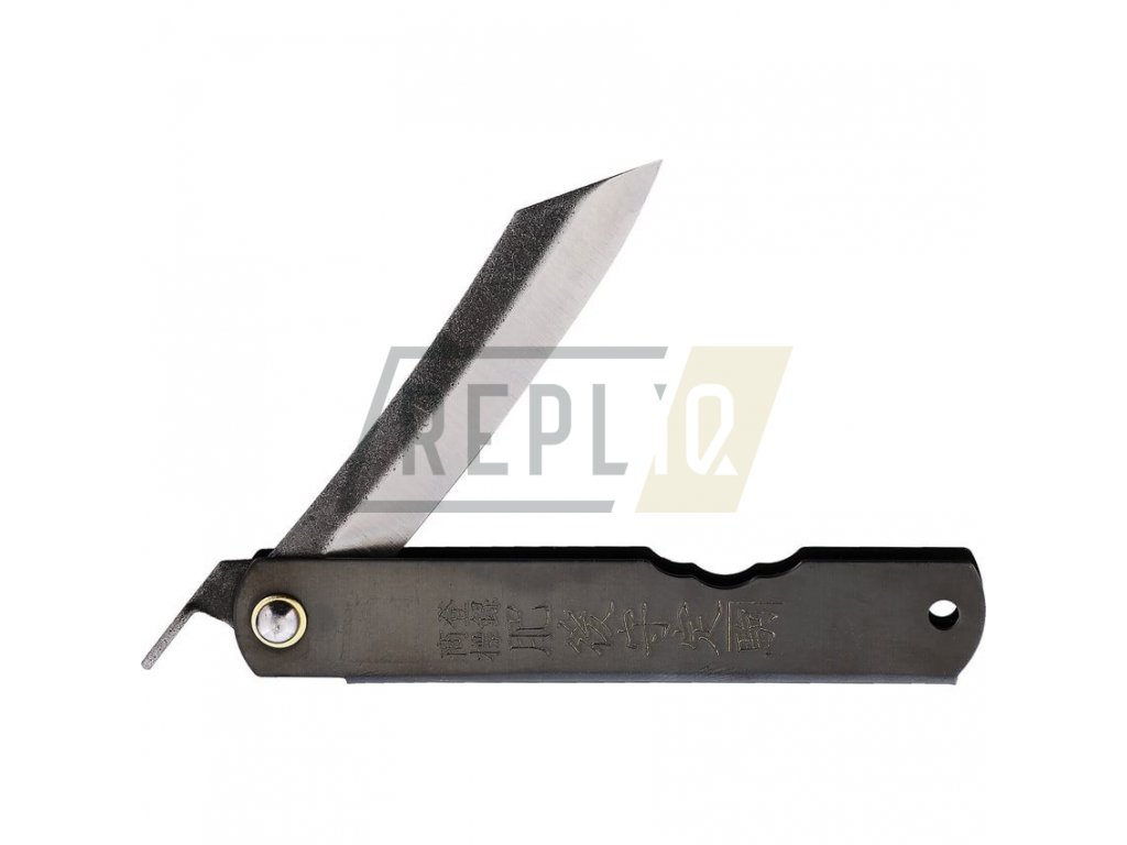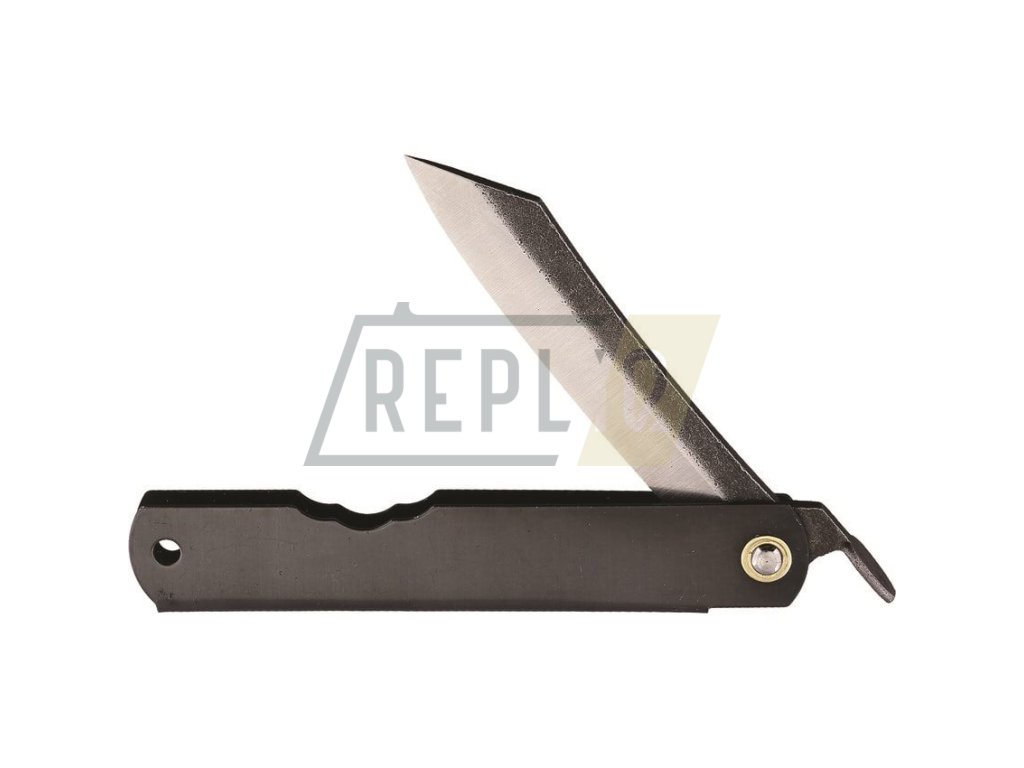 Stylový zavírací nůž, jehož vzhled by inspirovaný klasickými japonskými nástroji. Čepel s hladkým a velmi tenkým ostřím je vyrobená z uhlíkové oceli SK5 a je jištěná nikoli klasickou pojistkou, ale malou pákou "chikiri" na konci čepele. Čepel má navíc prodloužený tang, který zvyšuje celkovou odolnost výrobku. Rukojeť v černé barvě je vyrobená z nerezové oceli a na jejím konci naleznete otvor na provlečení šňůry. Vyrobeno v Japonsku
