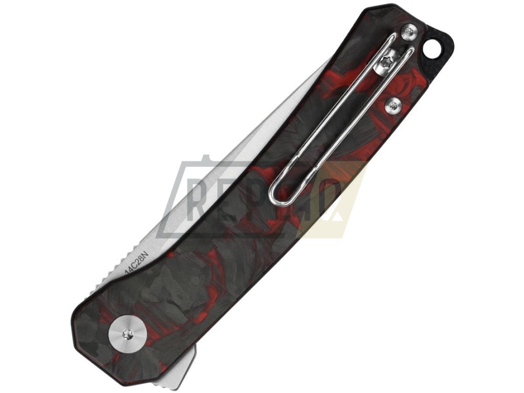 Příjemně provedený EDC zavírák se stylově vypadající rukojetí. Čepel nože ve tvaru Drop point s hladkým ostřím je vyrobená z nerezové oceli Sandvik 14C28N. Tato ocel se vyznačuje vysokým podílem chromu ve slitině, nůž tak skvěle odolává korozi. Pro snadné otevírání je čepel opatřena subtilním flipperem a o hladký chod se stará keramické kuličkové ložisko. V otevřeném stavu je nůž jištěn pomocí léty prověřené pojistky typu LinerLock. Ovládací mechanismus pojistky naleznete na spodní hraně rukojeti.