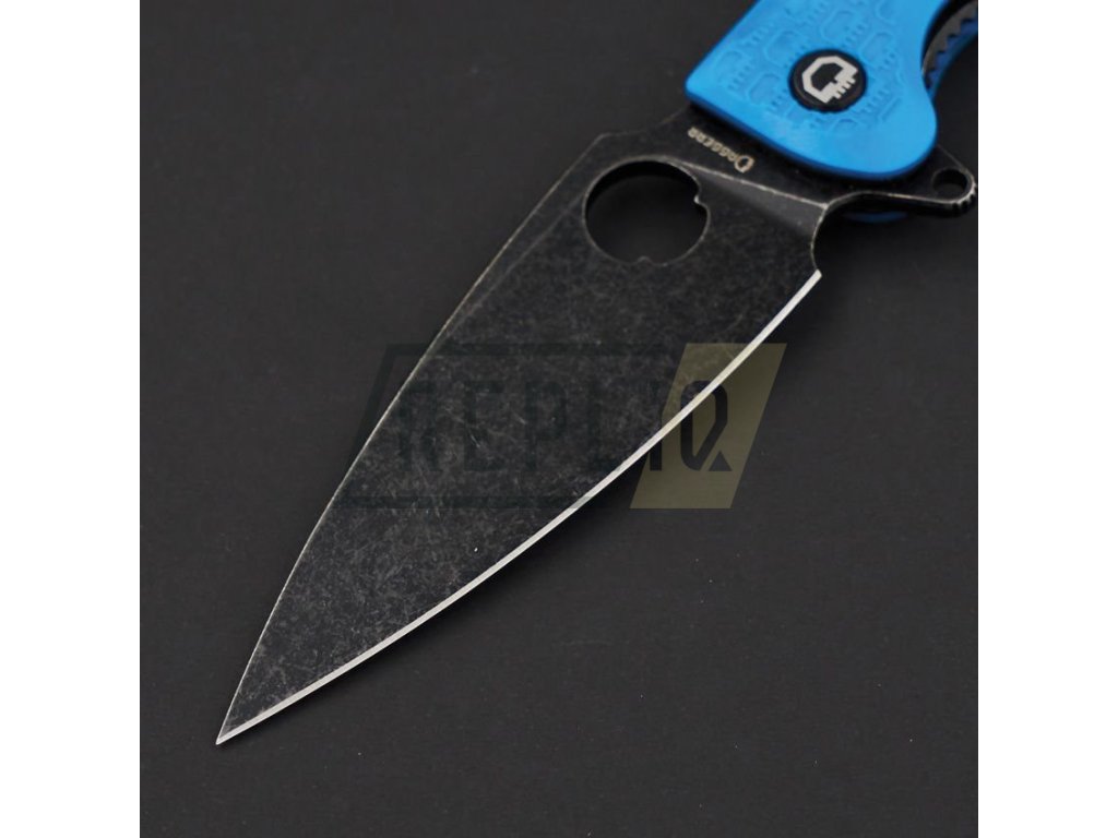 Designový zavírák v modro-černém provedení. Čepel tvaru spear point s hladkým ostřím je vyrobená z nerezové oceli 8Cr14MoV a opatřená černou povrchovou úpravou s umělou patinou. V otevřeném stavu je nůž jištěný pojistkou LinerLock. K otevření jednou rukou je možné použít flipper nebo otvor v čepeli s obrysem ve tvaru lebky. Motiv lebky je použit i jako textura na střenkách z FRN pro jistější úchop. Rukojeť je zakončena rozbíječem skla a kapesním klipem, taktéž stylizovaným do podoby lebky, který plní i funkci očka na provlečení pojistné šňůrky.