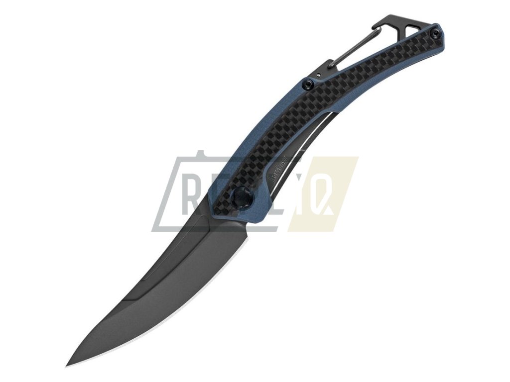 Čepel s hladkým ostřím je vyrobená z nerezové oceli 8Cr13MoV s šedým titanovým povlakem, který chrání čepel před korozí. V otevřeném stavu je čepel jištěná spolehlivou pojistkou typu FrameLock. V horní části čepele naleznete poměrně výrazný nehetník usnadňující otevření čepele. Rukojeť je lehce zakřivená a vyrobená z odolného materiálu G10 se stylovou vložkou z uhlíkového vlákna. V zadní části rukojeti naleznete otvor na provlečení pojistné šňůry a zabudovanou karabinu, kterou můžete využít k zavěšení nože na výbavu. Samozřejmosti je kovový opaskový klip.