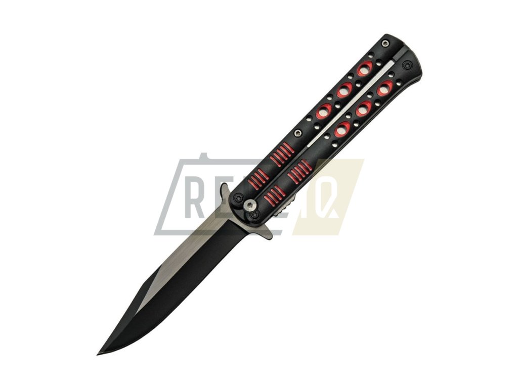 Nůž zavírací rukojeť vzhledu motýlek ČERNO-ČERVENÝ
