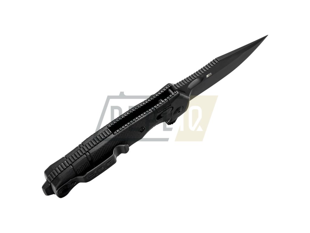 Prémiový taktický nůž určený pro použití profesionály ve výkonu služby. Jeho konstrukce je inspirována nožem SEAL s pevnou čepelí. Černěná čepel s hladkým ostřím ve tvaru clip point disponuje otvorem pro snadné otevírání, velmi výrazným flipperem a horní plochou pro položen palce. O bezpečnost při používání nože se stará patentovaná pojistka XR LOCK, jejíž ovládací prvek naleznete v přední části rukojeti. Pojistka je natolik pevná, že odolá až 680 kg aplikované síly. Speciální zmínku si také zaslouží prémiová ocel S35VN o tvrdosti 59-61 HRC. Tato americká ocel je velmi houževnatá a jde na ni dosáhnout mimořádné ostrosti s vynikající retencí při zachování skvělé korozivzdornosti. Rukojeť je anatomicky tvarovaná, pokrytá jemnou protiskluzovou texturou a vyrobená z materiálu GRN, což je nylon zesílený skelným vláknem. Rukojeť je zakončena kovovým výstupkem na rozbíjení skla. Samozřejmostí je kovový opaskový klip s možností přemontování na levou či pravou stranu střenek. Nůž je vyráběn v USA.