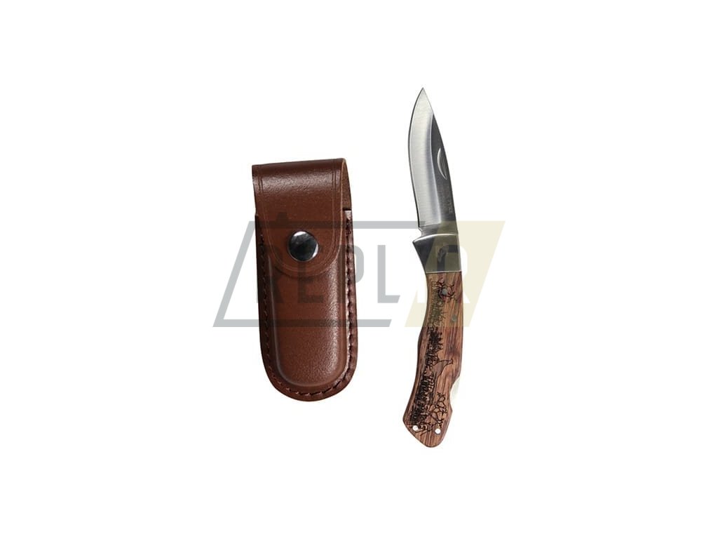 Zavírací nůž s hladkou čepelí a pouzdrem. Rukojeť je vyrobená z kombinace nerezové oceli a dřeva s obrázkem bažanta. Součástí nože je pojistka, která zamezuje nežádoucímu zavření nože. Hnědé kožené pouzdro se zapínáním na druk lze navléknout na opasek.