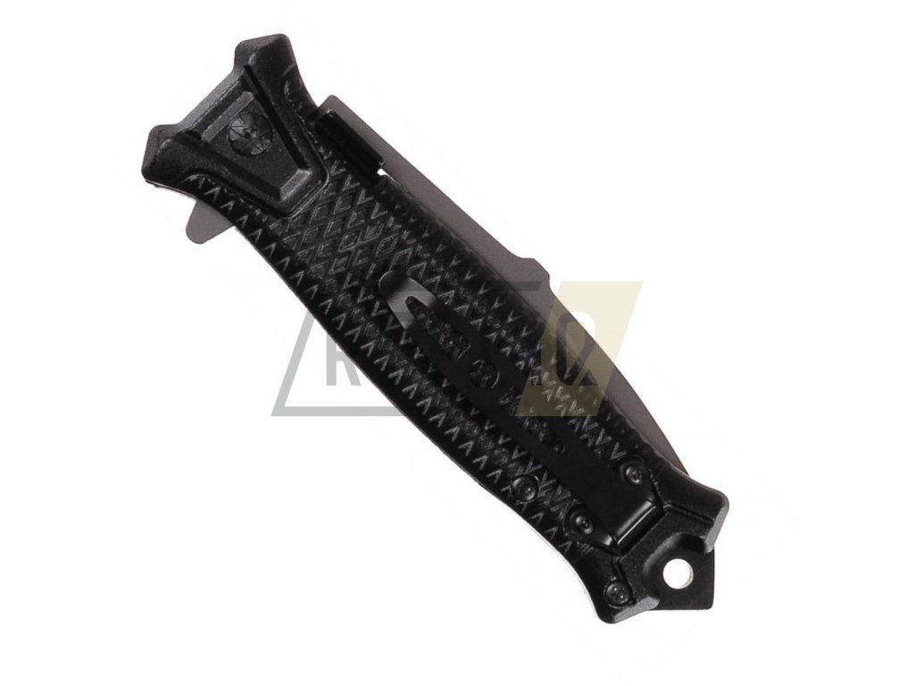 Netradičně vypadající zavírací nůž s texturou rukojeti připomínající hadí kůži. Čepel s hladkým ostřím je vyrobená z nerezové oceli s šedým povlakem, její horní část je opatřena opěrkou pro palec, která slouží pro jemnou a precizní práci. K jednoduchému otevírání jednou rukou můžete využít integrovaného flipperu. O bezpečnost se stará pojistka typu Linerlock. Rukojeť je tvarovaná pro pevný úchop, na jejím konci naleznete otvor na provlečení pojistné šňůry a rozbíječ skla. Samozřejmostí je kovový kapesní klip usnadňující přenášení.