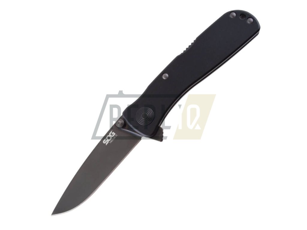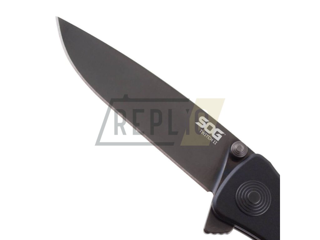 S.A.T. ™ (SOG Assisted Technology) - asistované otevírání typické pro nože značky SOG umožňuje extrémně rychlé a čisté otevření nože. U většiny ostatních nožů jiných značek je zapotřebí na flipper lehce zatlačit a švihnout zápěstím, ale u nožů SOG stačí přes flipper jemně přejet a nůž se okamžitě otevře. Flipper je opravdu citlivý, proto je o to více důležitá pojistka, která nechtěnému otevření/zavření nože zabraňuje. Jedná se o pojistku LockBack, která je doplněná posuvkou. Otevření nože jednou rukou umožňuje i oboustranný kolík umístěný na černěné čepeli. Na čepeli najdete i logo firmy SOG, označení nože (Twitch II) a číslo patentu.